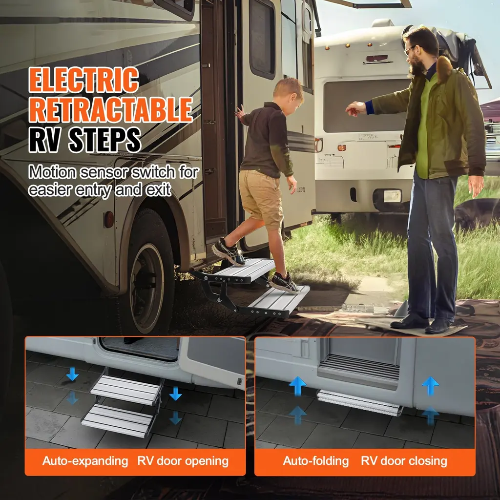 Rv Steps For Safe Entry And Exit, Rv, Trailer, Camper Steps - 2-Step Folding Type Electric