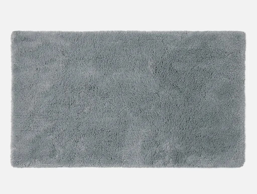 Sink into plush, sheared-pile cotton on one side of this misty blue reversible bath mat, or flip it over to enjoy the textured ribs on the other side. Skill artisans tuft the exclusive ultra-absorbent, ultra-luxurious and ultra-durable by hand. Crafted of pure organic cotton in a serene hue, our reversible bath rug indulges in spa-like comfort underfoot.