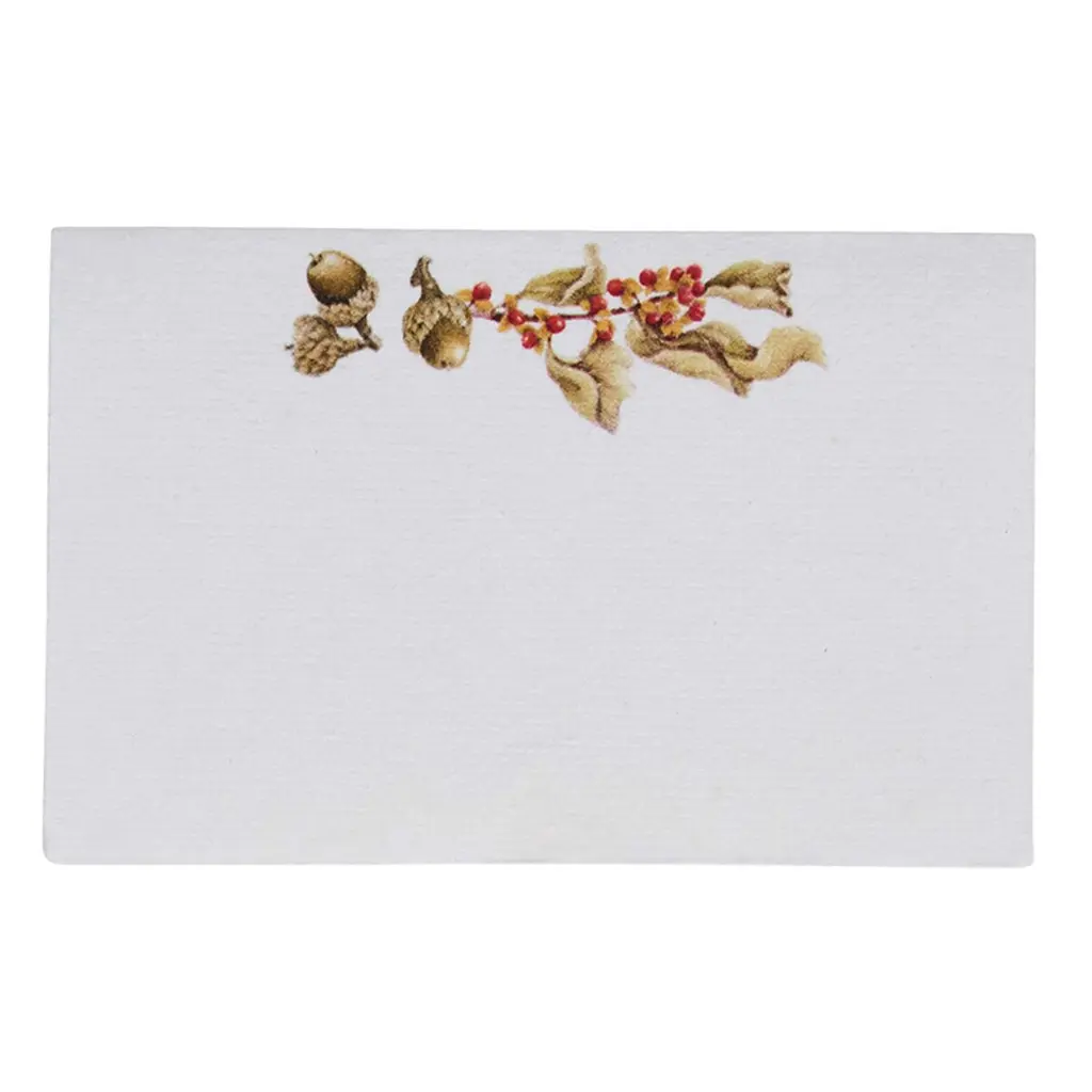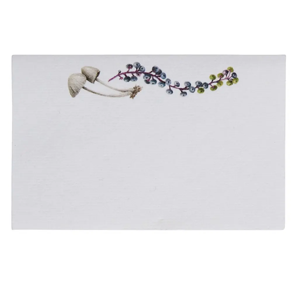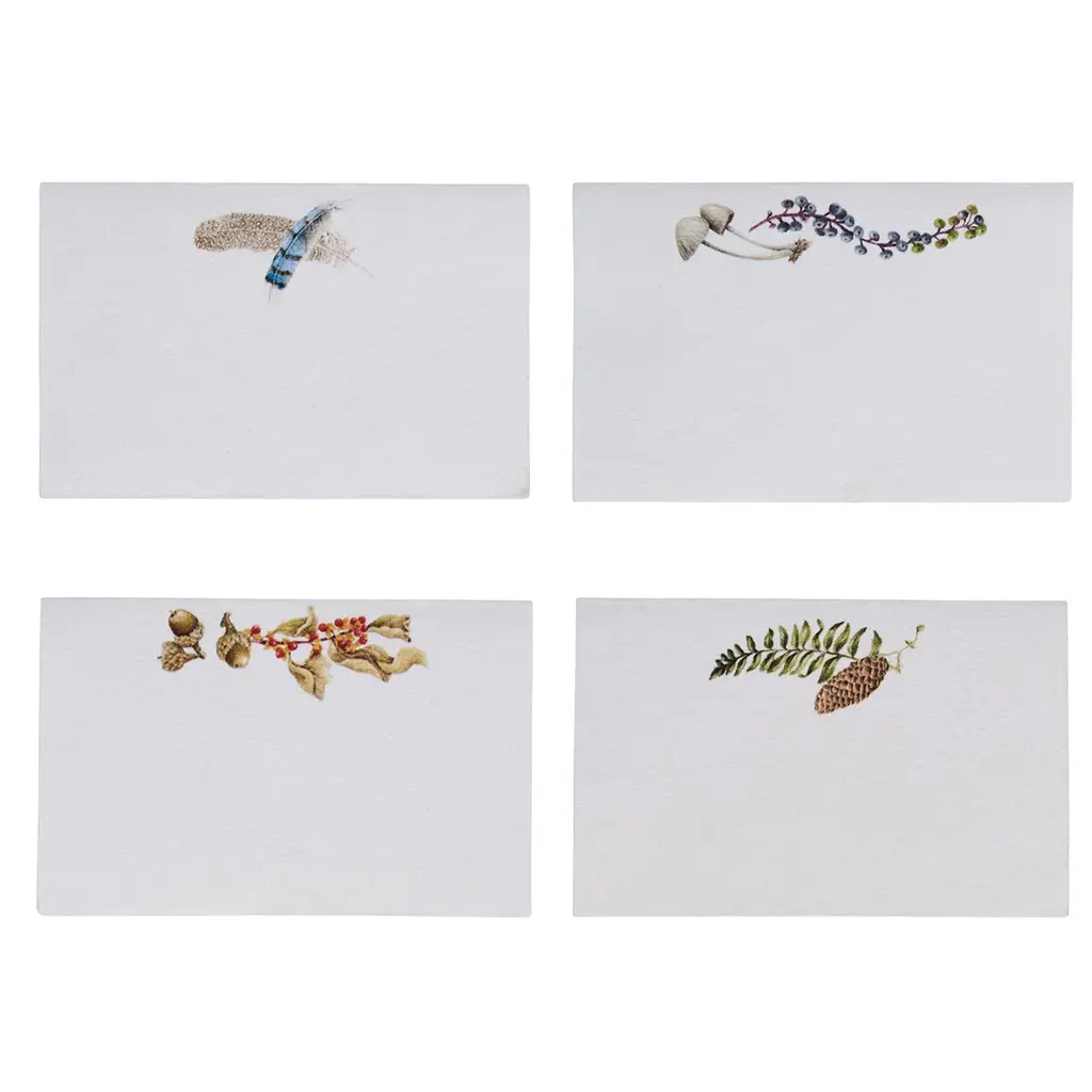 Put the finishing touch on the table with these place cards that feature the mushrooms, acorns, feathers, and ferns of the forest in charming detail.