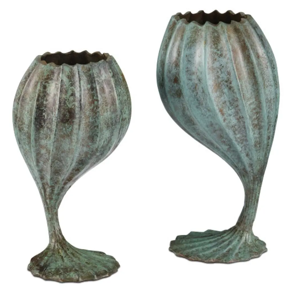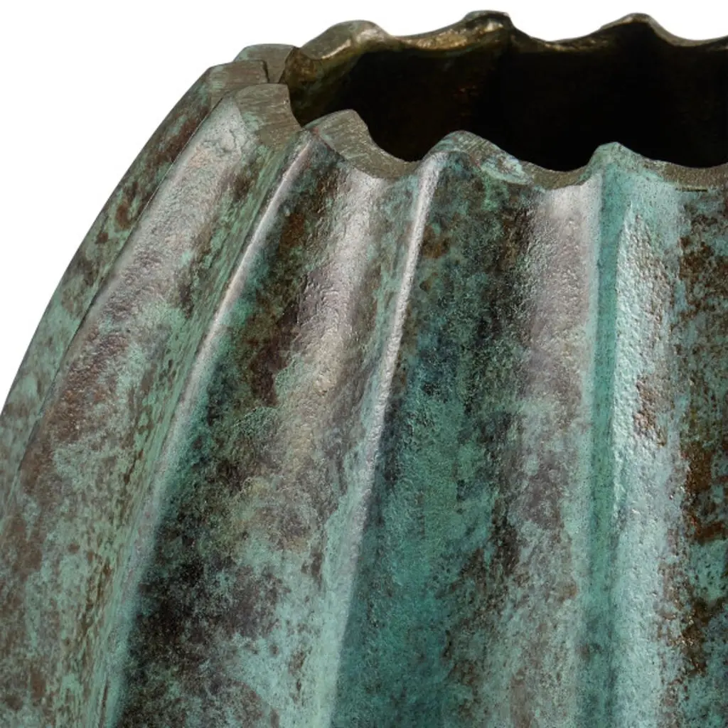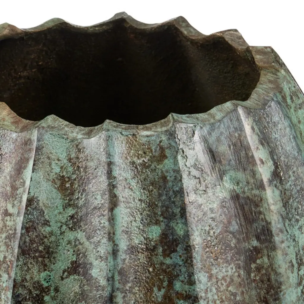The Utrecht Object Set includes two vessels with organic profiles made of cast aluminum that have surfaces covered in an incredible raw patina. Once these vases are pulled from the mold, they are oxidized to make them look naturally aged like fine antiques.