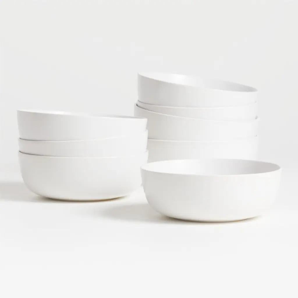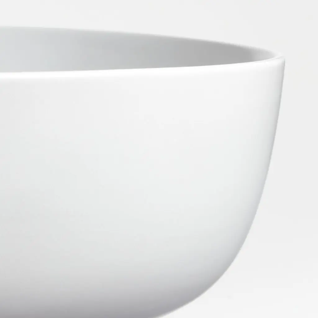 The clean coupe shape of our Wren bowls complements the perfectly creamy glaze. Finished in matte white, the eight dishes set a modern table with their confident curves. For a beautifully cohesive look, pair the oven- and dishwasher-safe cereal bowls with the matching sets of salad plates, dinner plates and mugs. Part of our Wren dinnerware collection, our matte white bowls are Crate & Barrel exclusives.