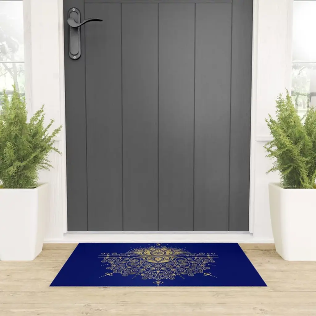Sacred Lotus Mandala – Navy & Gold Palette Welcome Mat