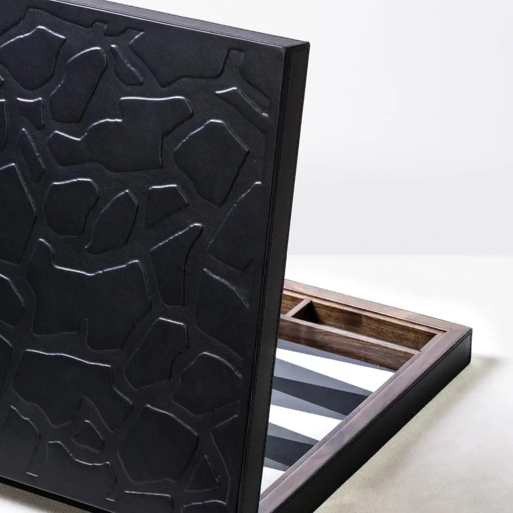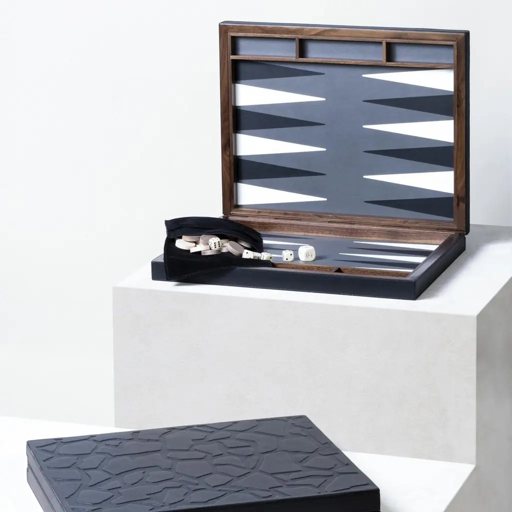 Part of the Tosca collection, this elegant backgammon board and case is part of a limited series and will be a striking addition to a personal collection, or a superb gift for a game lover. Its structure in walnut features three open compartments at each side of the board for storing gaming accessories before closing the case. Exquisitely crafted, this piece is adorned with inlays and equipped with a magnetic closing. Customizations are available by contacting the Concierge.