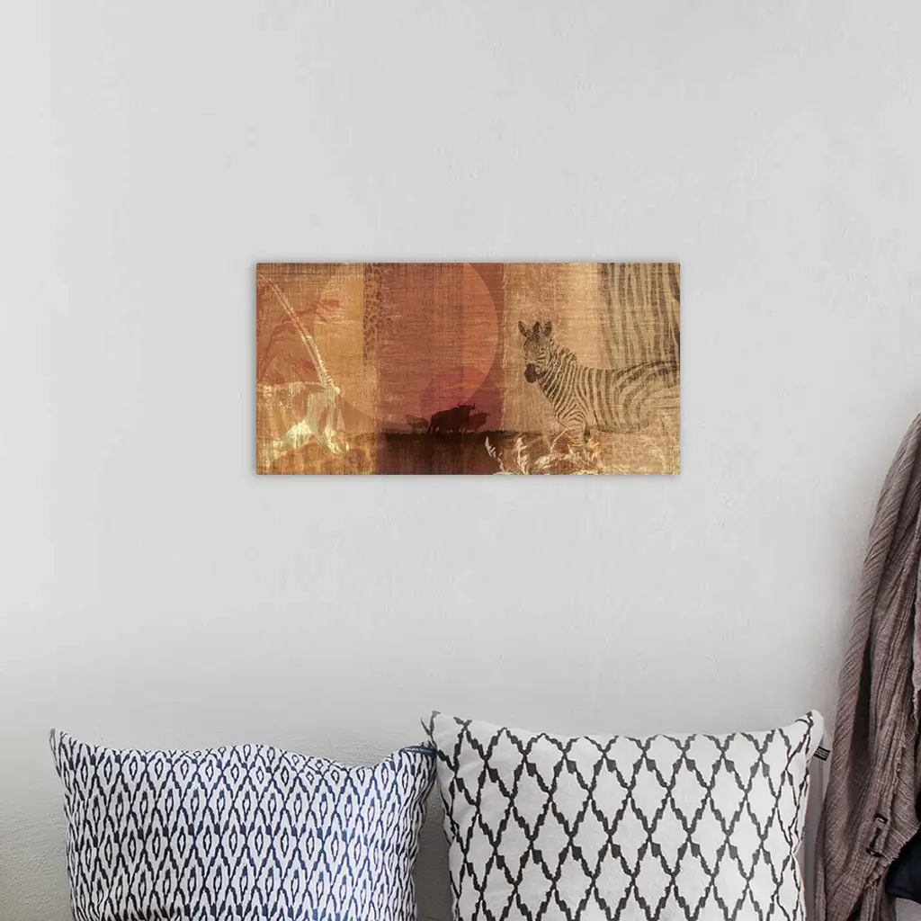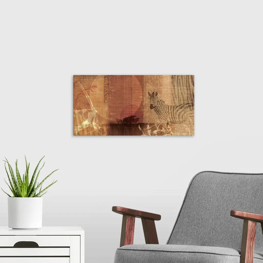 Safari Sunset I wall art for home and office decor. Discover canvas art prints, photos, mural, big canvas art and framed wall art in GreatBigCanvas.com's varied collections.