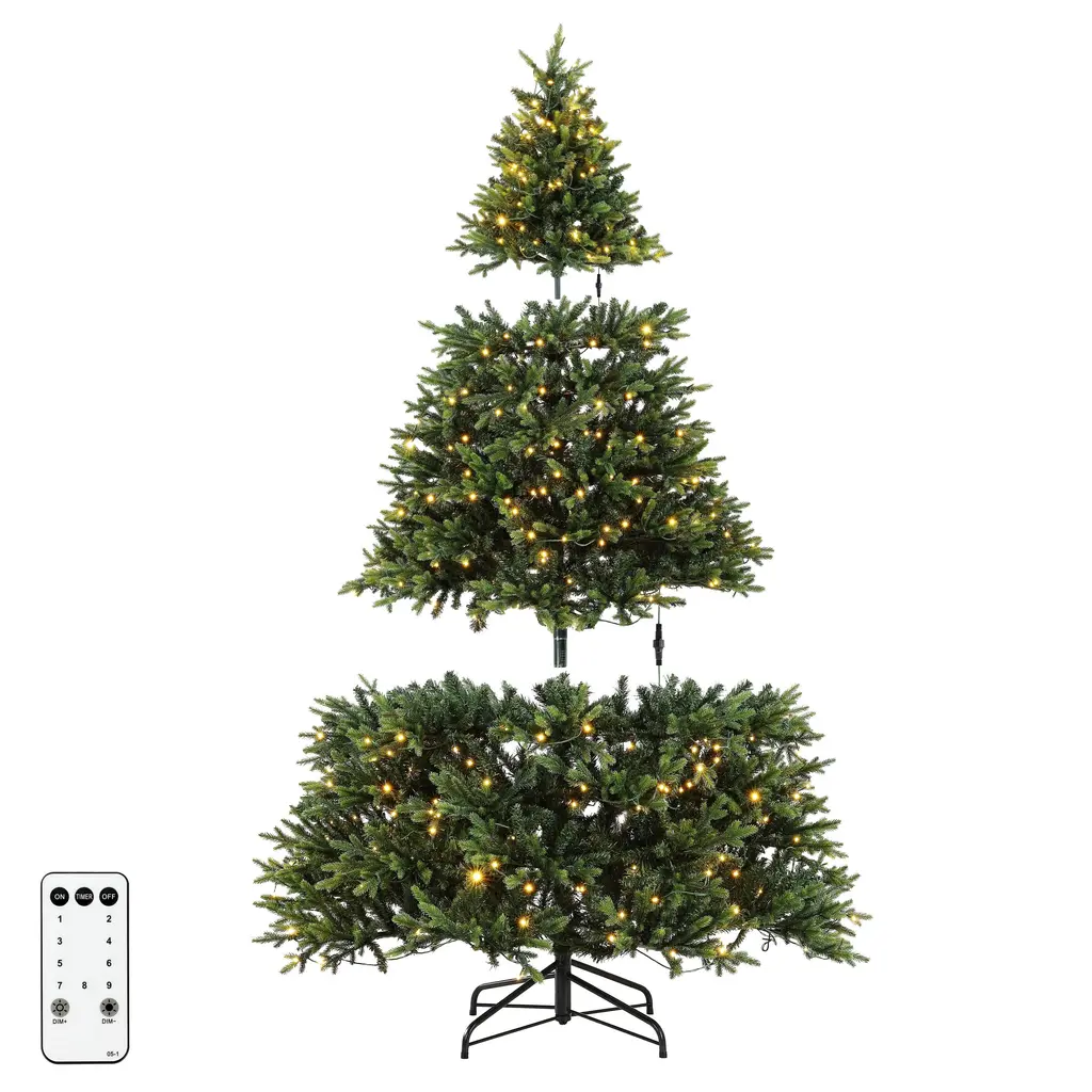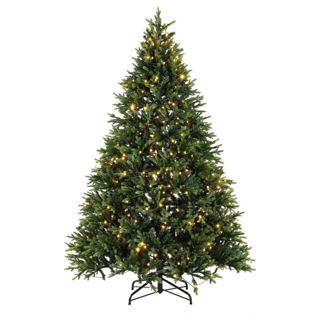 Add timeless elegance to your holiday celebrations with our pre-lit artificial Christmas tree. It beautifully replicates the lush green of an iconic Christmas tree with classic needle foliage. The natural silhouette and realistic detailing of our artificial tree vouch for a full and abundant look. With hinged branches, the tree remains perfect for showcasing your treasured ornaments. Our artificial Christmas tree is pre-lit to serve as a radiant and charming focal point for your holiday celebrations. Features: Multicolored LED lights are pre-lit for a warm glow and remain lit even if a bulb ever goes out Includes remote with 10 different settings, including ones to turn the lights on/off Includes a durable metal base and storage bag to stow away your tree Treated with flame retardant to safely enjoy for years to come 60" wide x 60" deep x 90" high Stand is 7" tall Assembly required