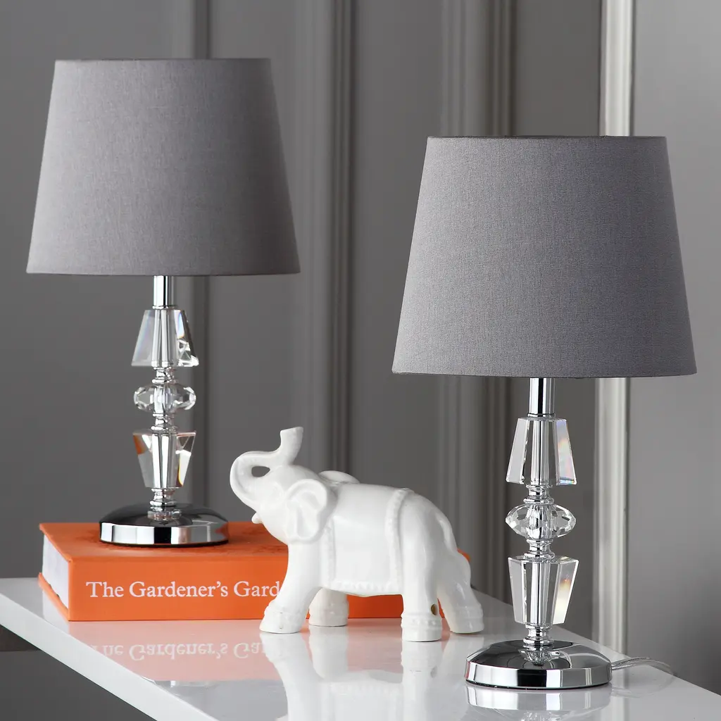 Safavieh Lighting 15-Inch Crescendo Grey Shade Tiered Crystal Table Lamp (Set Of 2) - 9"x9"x16" - 9"x9"x16" - Clear