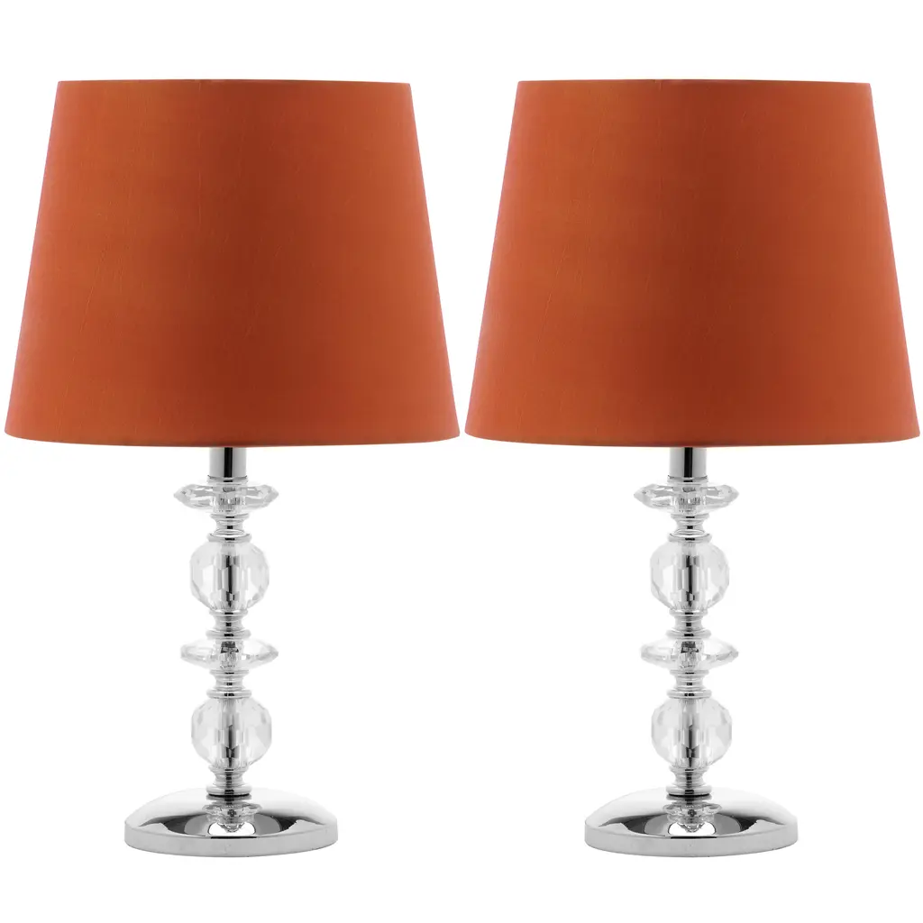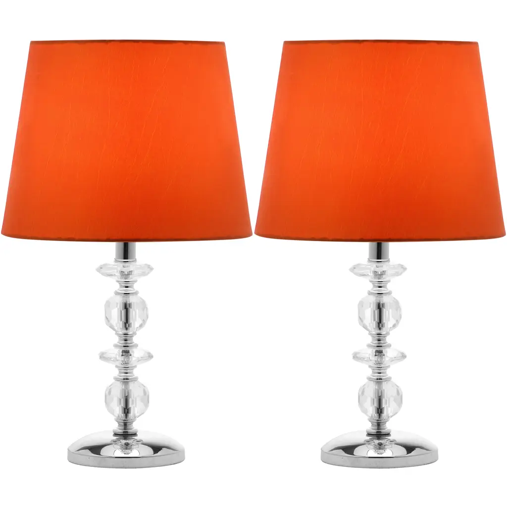 Safavieh Lighting 15-Inch Derry Orange Shade Stacked Crystal Orb Table Lamp (Set Of 2) - 9"x9"x15" - 9"x9"x15" - Clear