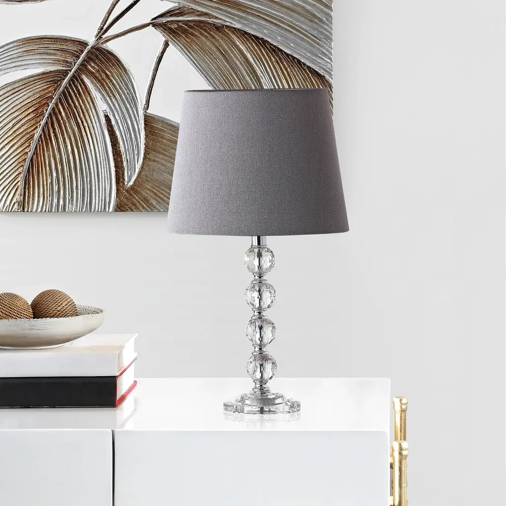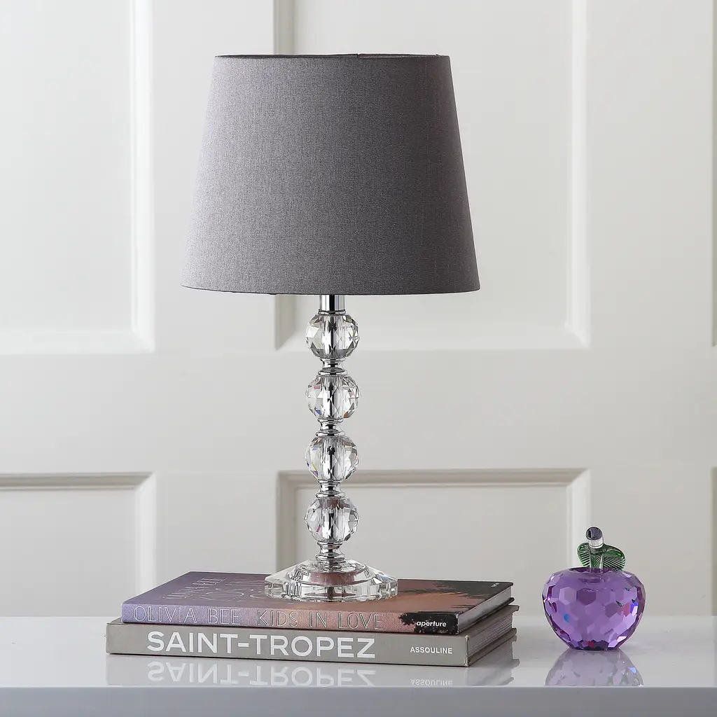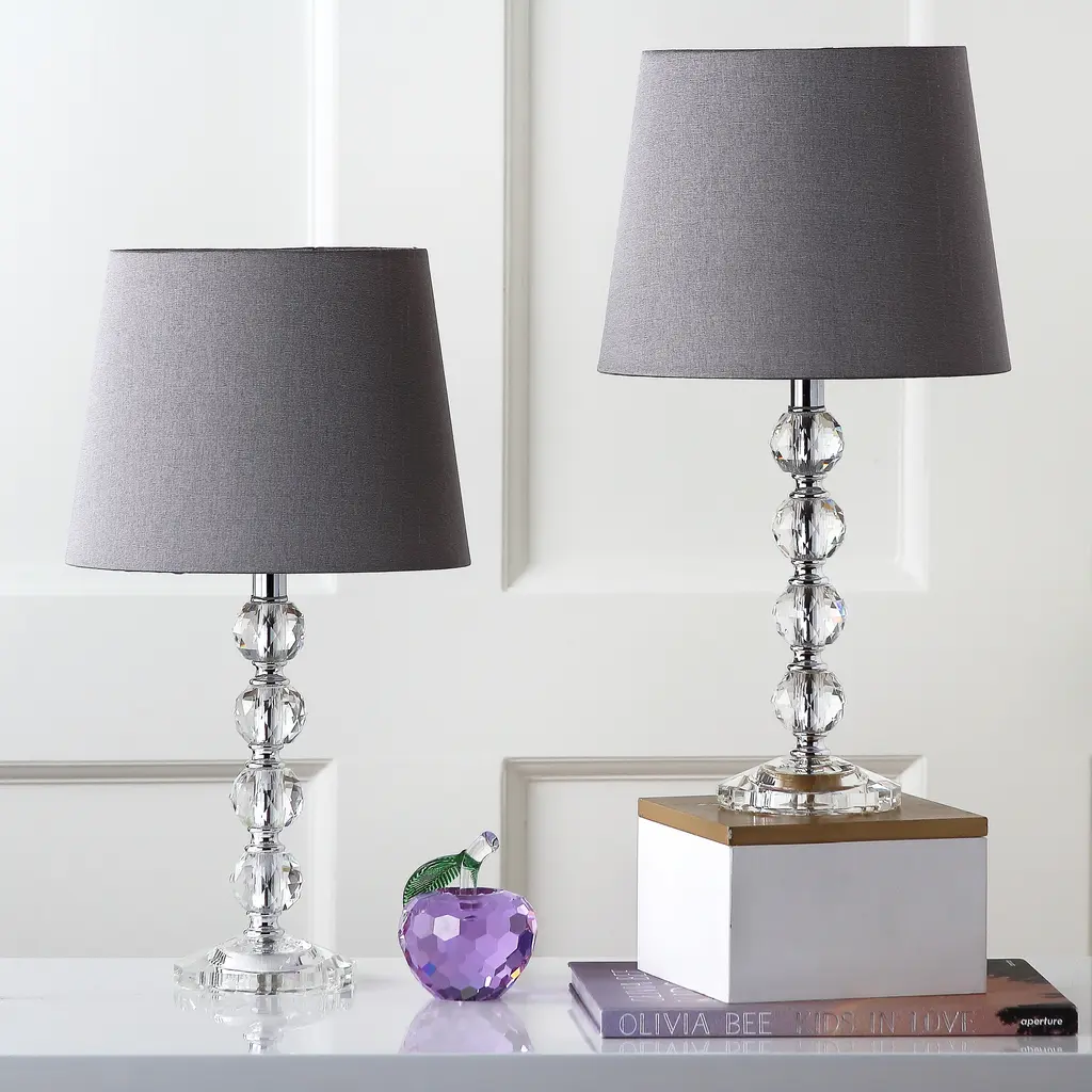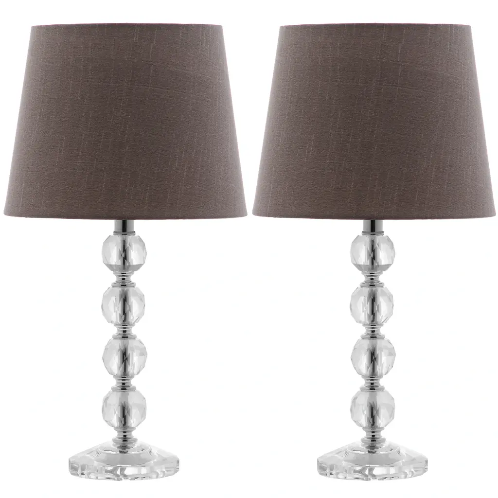 Safavieh Lighting 16-Inch Nola Grey Shade Stacked Crystal Ball Table Lamp (Set Of 2) - 9"w X 9"d X 16"h - 9"w X 9"d X 16"h - Clear