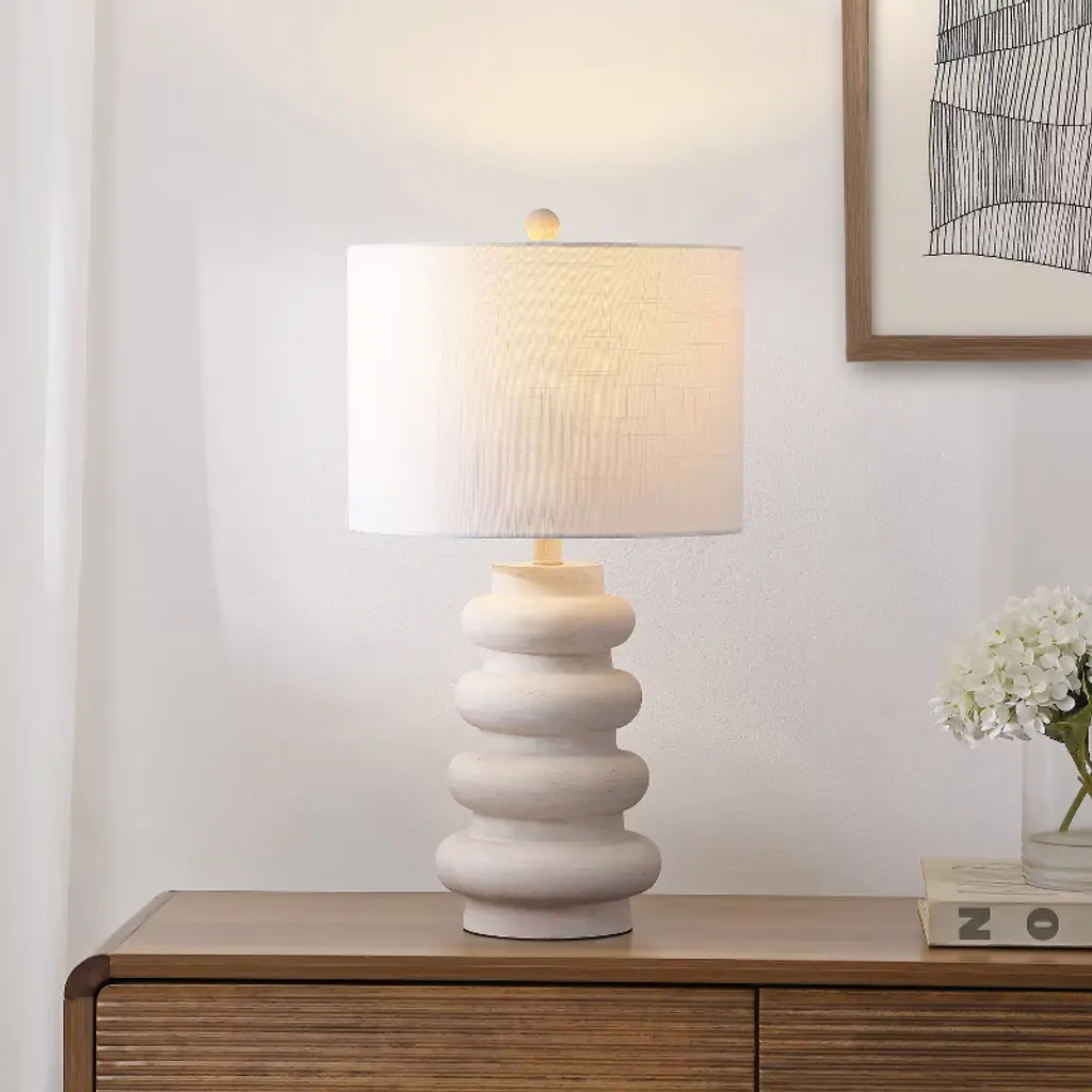 Illuminate your space with the Renata Table Lamp—a harmonious blend of traditional design and natural elements. Featuring a sturdy walnut-colored wooden body paired with an elegant fabric shade, this lamp adds warmth and a soothing ambiance to any room. The artful construction showcases a series of stacked wooden discs, creating an alluring profile that stands at a versatile height, making it a practical choice for end tables, nightstands, or desks. Bring home this distinguished yet approachable piece to enhance your decor with its inviting glow and sophisticated charm.