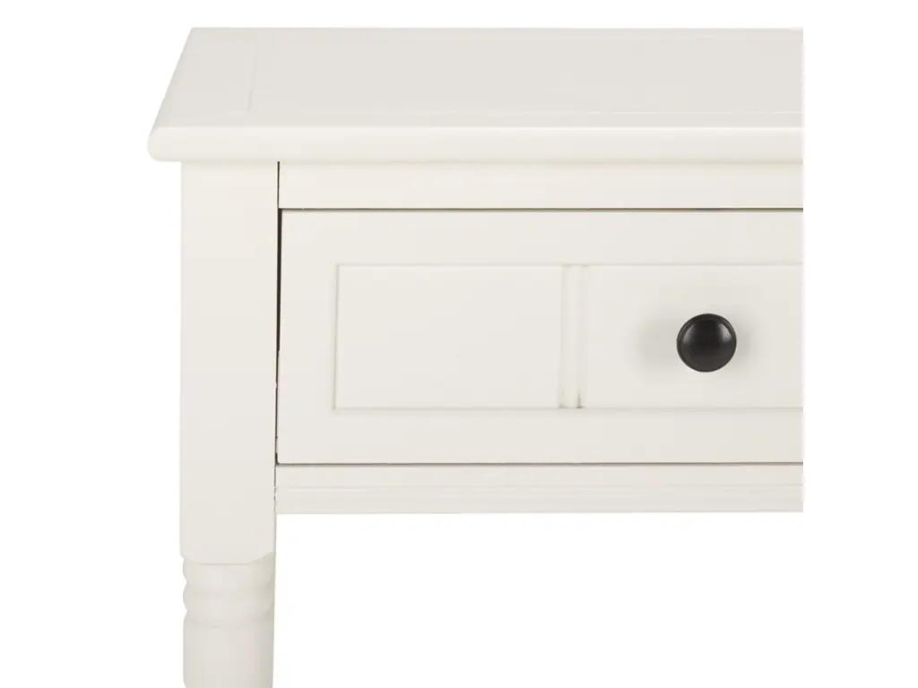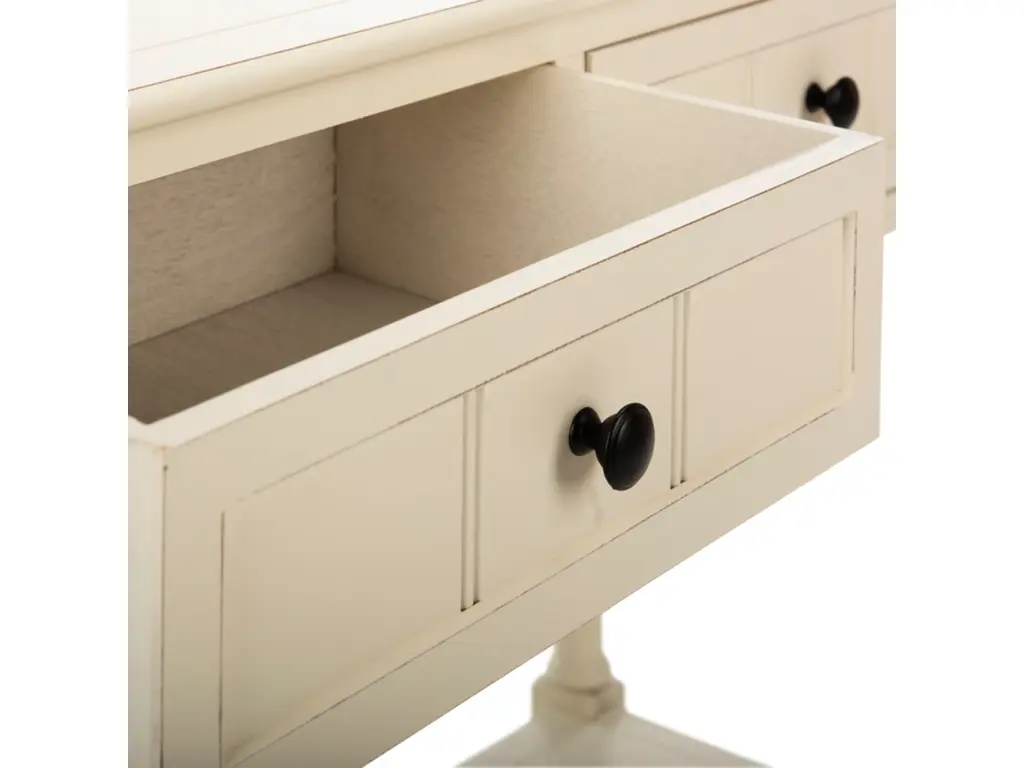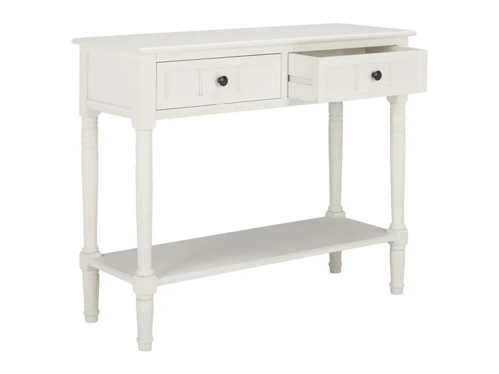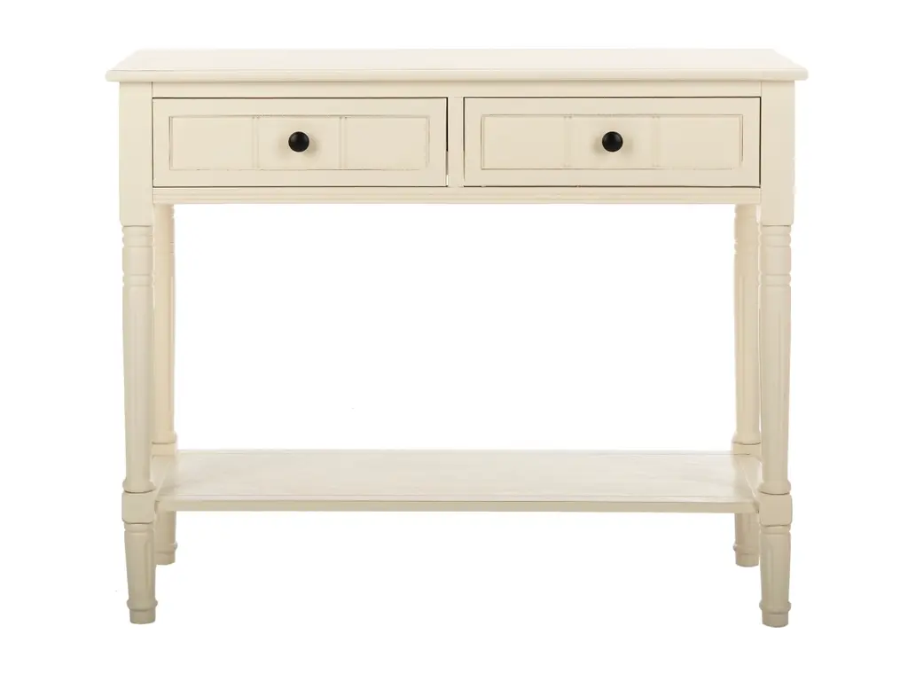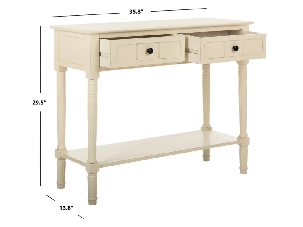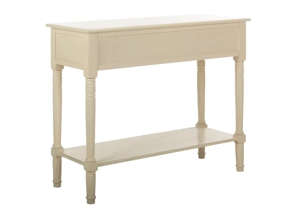 The Samantha console breathes inviting country charm into any hall, entryway or living room with style and ease. The console's classic turned legs and carved details are beautifully spotlighted by the distressed cream finish on its pine wood frame.