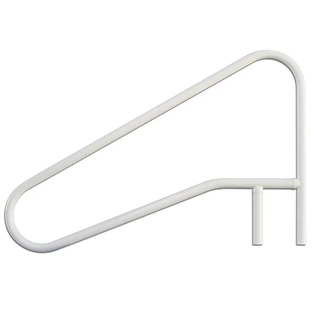 Pooltime is all about fun in the water, so start your fun off right using the Saftron Cross-Braced 3-Bend In-Water Handrail. Made to last year after year, this durable railing makes entering and exiting your pool easy. This 3-bend cross-braced handrail is perfectly angled to make the transition in and out of the water flawless. This particular model of handrail features 3 bends for multiple options when entering or exiting your outdoor pool. With a fully-reinforced aluminum interior, this swimming pool railing is extra sturdy and reliable, while the high-impact polymer exterior ensures the outdoor safety rail is unaffected by pool chemicals, salt, and the sun, remaining cooler to the touch. Whether it be the sun's rays or chemicals, this pool accessory will keep its smooth, bright finish for years with virtually no maintenance. For added convenience, no grounding or bonding is required. Make epic, graceful entrances into your pool, and safe, trip-free exits using this Saftron Cross-Braced 3-Bend Slope In-Water Handrail. Cross-braced, 3-bend in-water handrail sloped to make entering and exiting the pool safe and easy High-impact polymer exterior withstands damage from pool chemicals, salt, and sun while remaining cooler to the touch Fully reinforced aluminum interior provides reliable strength and durability for lasting use Durable long-lasting finish will maintain a smooth, bright finish for years; Requires virtually no maintenance No grounding or bonding required for ultimate user convenience Tubing: 1.90 inches OD Wall thickness: 0.25 inches Bends: 6-inch radius Color: White Dimensions (W x H): 54 x 32 inches Weight: 20 pounds Manufacturer warranty: 10-year warranty