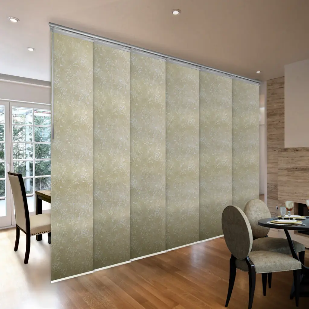 Central Design Products is pleased to introduce a new innovative panel track that offers easy 2-way installation, adding an alluring style and refined touch to your home decor. The single rail design of the track is sleek, compact, and reduces the overall footprint and weight of the installation, eliminating bulky, intrusive window treatments. Adjusting the panel height is a breeze � simply trim the panel, re-attach the liner, and install the panel weight. Detailed instructions are included.The panel track also features a patented slider design, made with aluminum and fitted with bearings that allow for durable and smooth operation. The sliders are stacked closer together than conventional panel tracks, reducing light bleed coming from the gaps between panels. This track has endless uses from dividing rooms, garages, offices, and closets to decorating windows and patios. Available in larger sizes including 8, 10, and 12 panels. Extends from 98-130� wide. Each panel measures 23.5" wide and 91.5" tall, with a total installation height of 94" (includes the 2.5" rail track). The track can be wall or ceiling mounted. The panels can stack on the left or the right. The clearance from the wall is extendable from 1.25� to 3.25� and projection from the wall is extendable from 3� to 4.25�. Sage panel is made from 100% Polyester, with a light filtering shade that blocks 70% of the light.