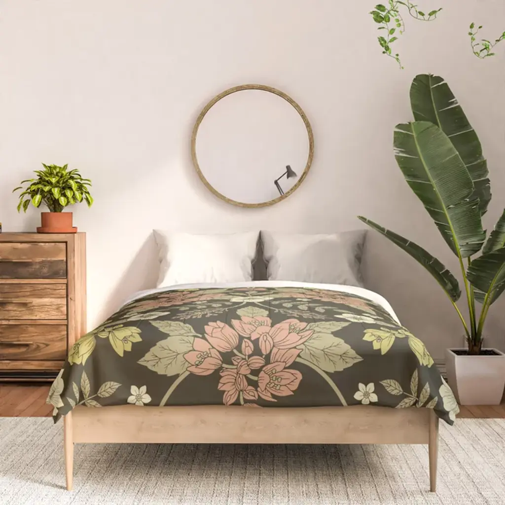 Sage, Dark Green, Peach & Cream Floral Pattern Comforter