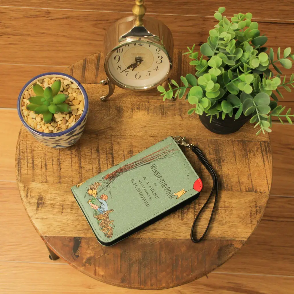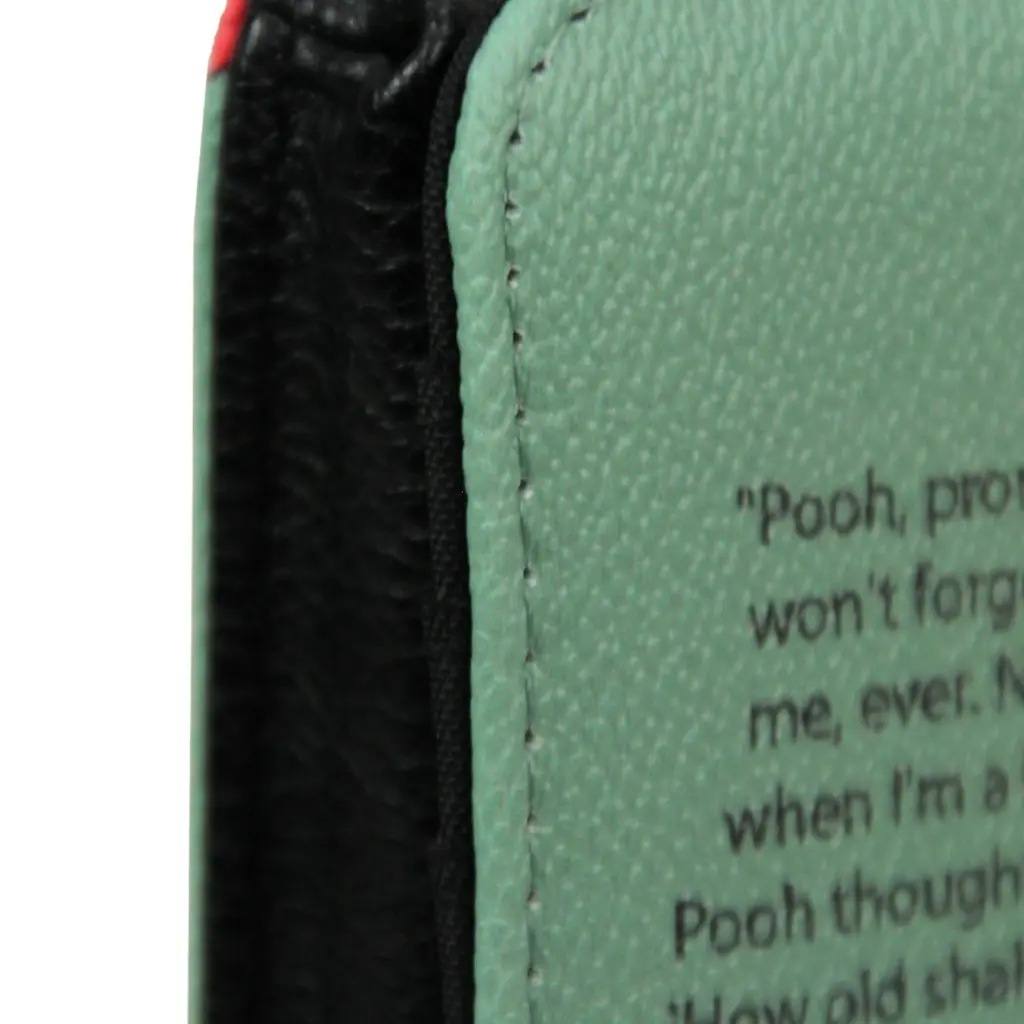 Sage Green Winnie The Pooh Book Wallet Wristlet Id Holder, Snap Close, Zipper Coin Pouch, 4 Card Slots, And Bill Pockets - Green - 1 X 7 X 4 Inches