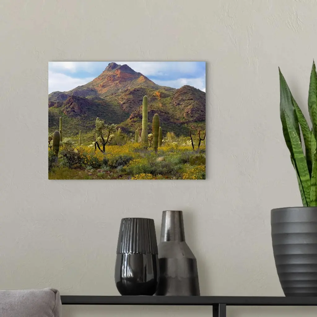 Saguaro and Teddybear Cholla amid flowering Lupine and California Brittlebush wall art for home and office decor. Discover canvas art prints, photos, mural, big canvas art and framed wall art in GreatBigCanvas.com's varied collections.