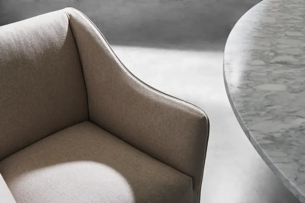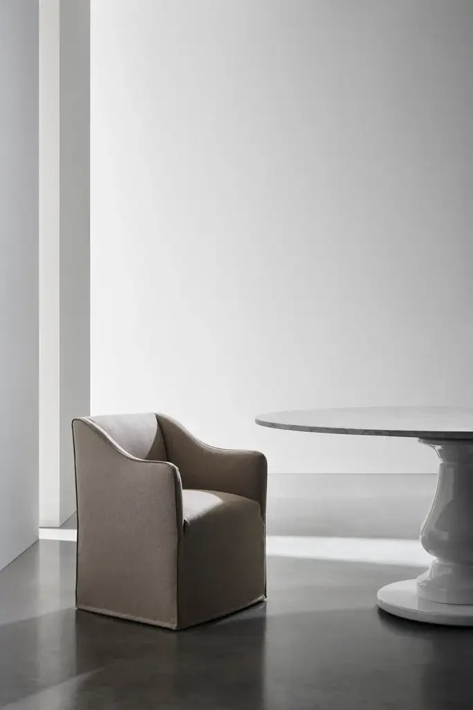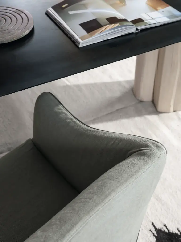 Saia 25 is a dining armchair with differentiated density polyurethane padding. Removable cover with piping.Available in all sample fabrics except 3D, Quilt Malta and Quilt Velour.