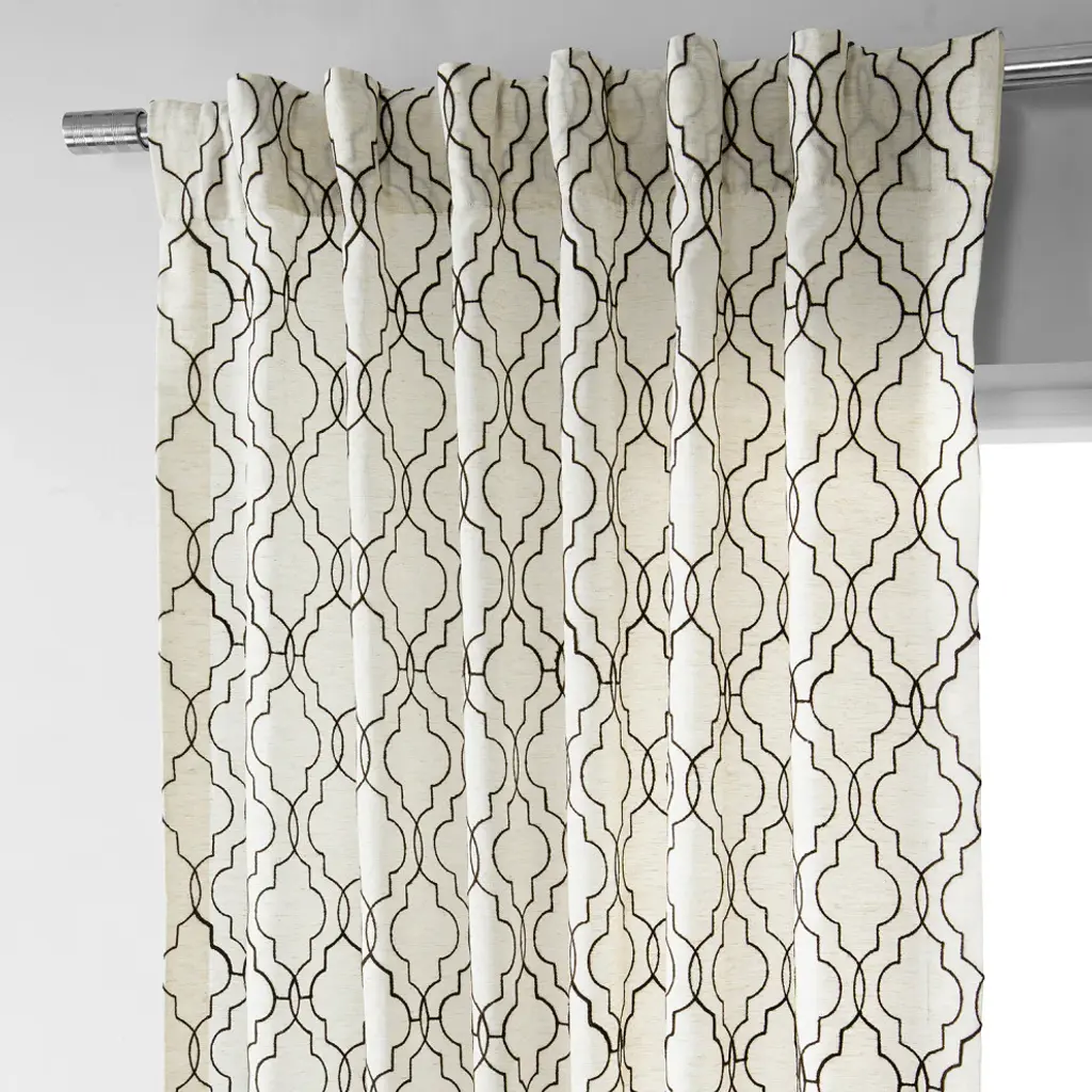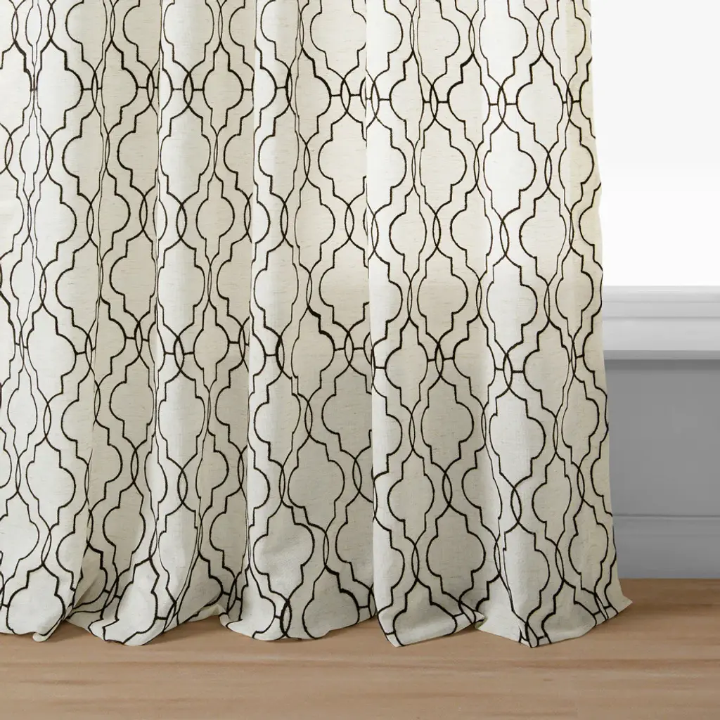 Saida Chocolate Embroidered Fauxlinen, 50"x96"