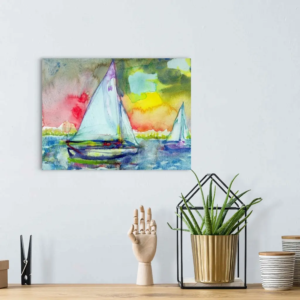 Sailboat Evening wall art for home and office decor. Discover canvas art prints, photos, mural, big canvas art and framed wall art in GreatBigCanvas.com's varied collections.