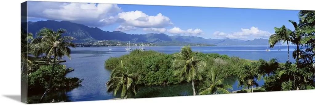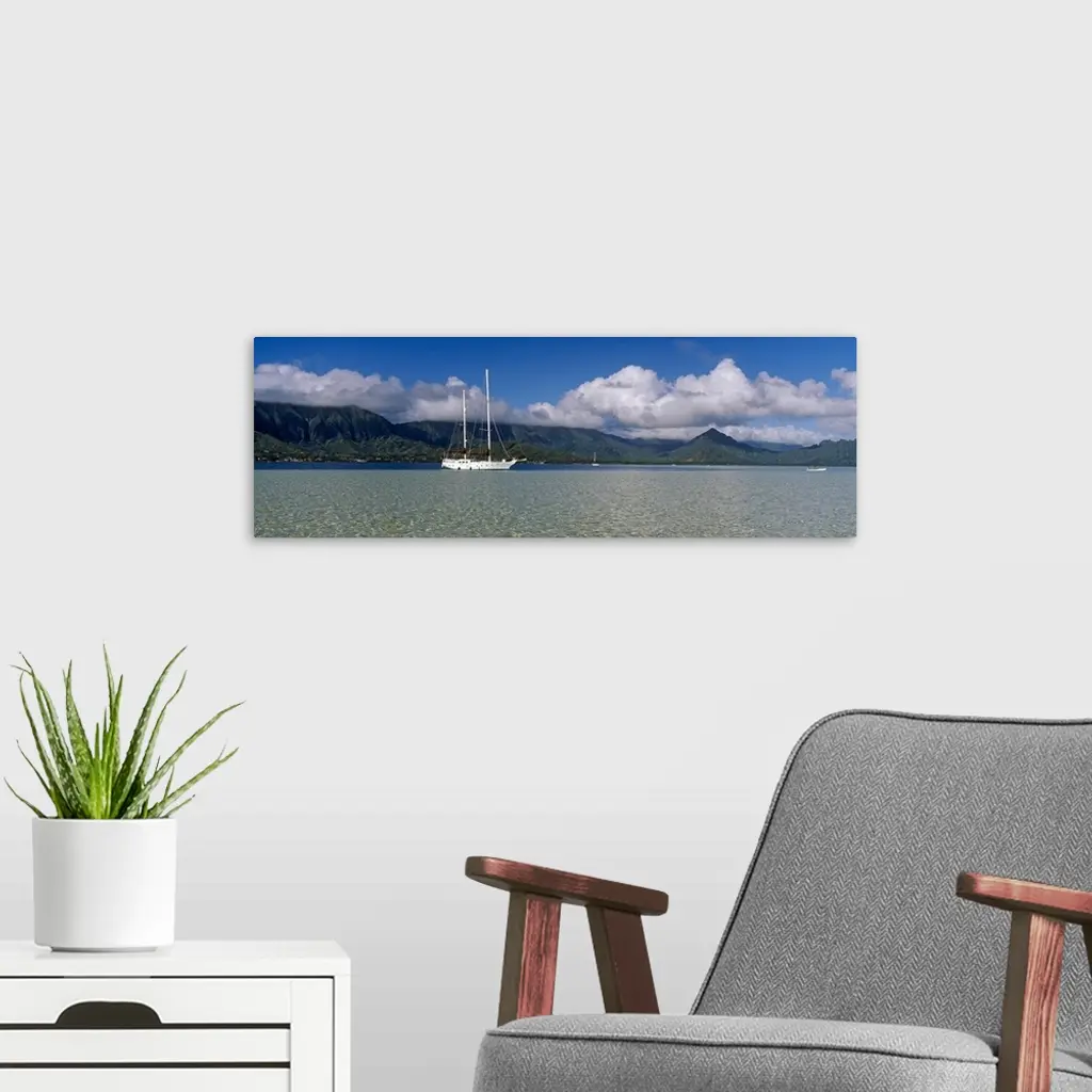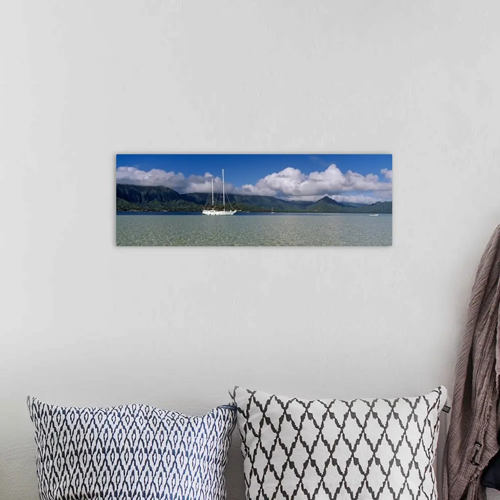 Sailboat in a bay, Kaneohe Bay, Oahu, Hawaii wall art for home and office decor. Discover canvas art prints, photos, mural, big canvas art and framed wall art in GreatBigCanvas.com's varied collections.