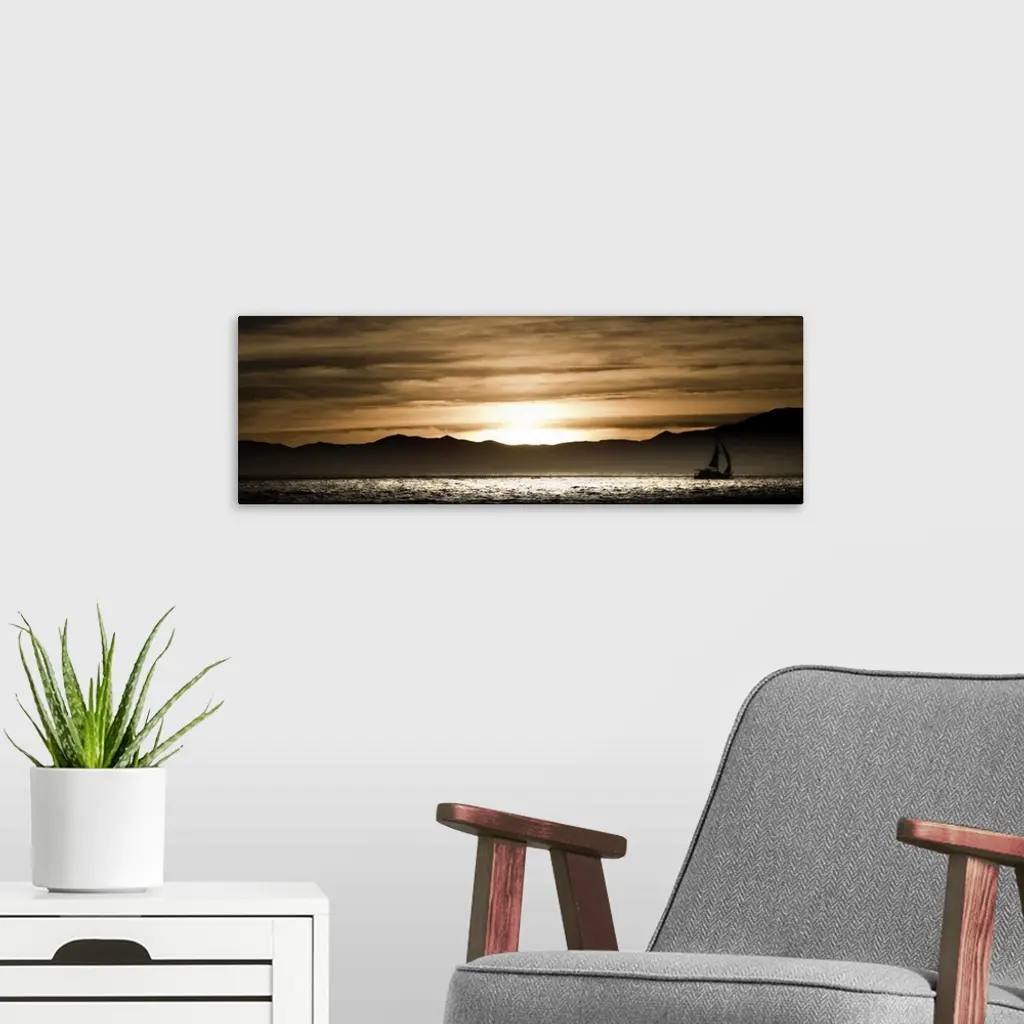 Sailboat in the ocean at sunset