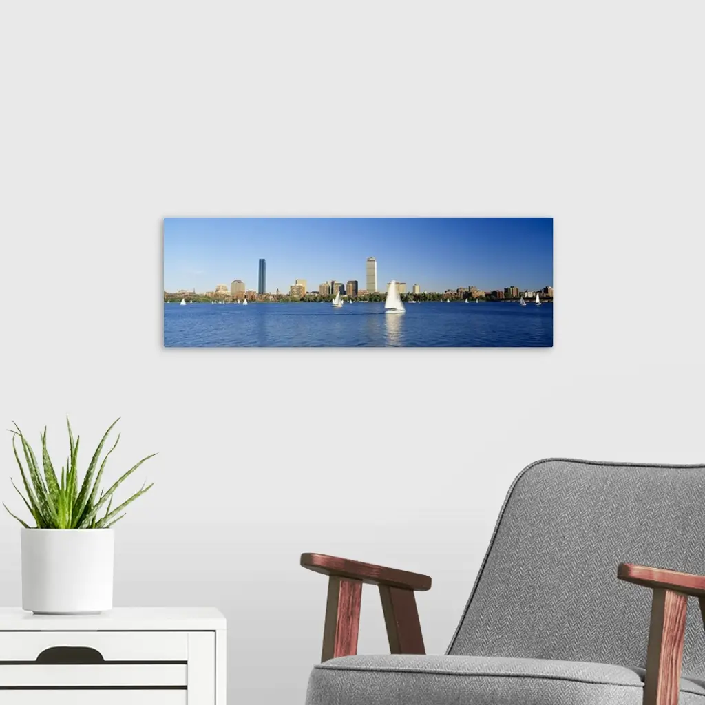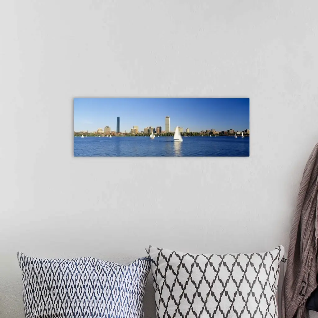 Sailboats in a river with skyscrapers in the background, Charles river, Boston, Massachusetts wall art for home and office decor. Discover canvas art prints, photos, mural, big canvas art and framed wall art in GreatBigCanvas.com's varied collections.