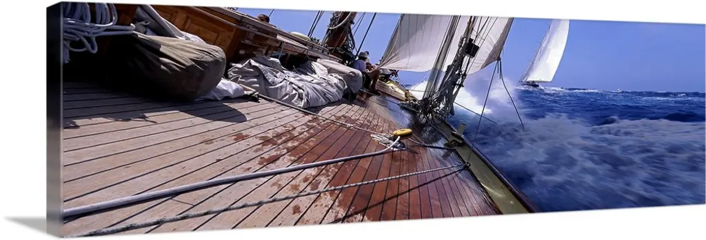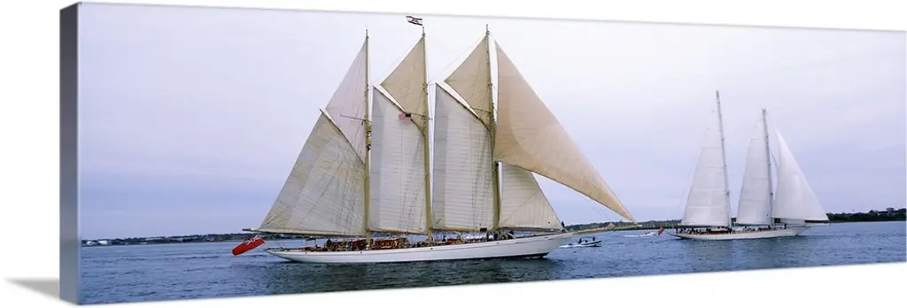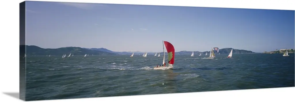 This is a panoramic photograph taken at eye level of multiple boats on the water on a clear day.