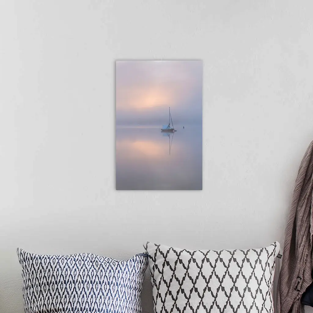 Sailing Boat At Dawn On Wimbleball Lake, Exmoor National Park, Somerset, England.