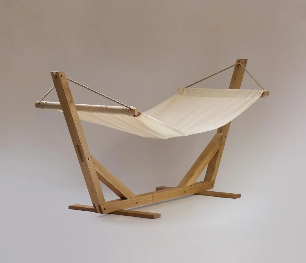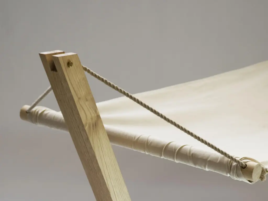 Inspired by a boat, the Sailor hammock has been designed to be placed both indoors and outdoors; it is easy to disassemble and the support cloth is removable and washable. The materials are natural, durable, and high-quality: solid oak, brass metal inserts, jute rope, and 100% natural hemp fiber. Made in complete respect for the environment and entirely by hand, it is therefore possible to customize the product through the choice of wood, fabric, and color of the seat\. Signed by Maker Signed by Maker,Signed by Maker