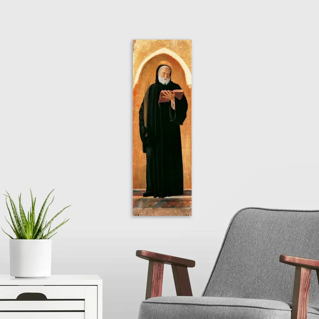 Italy, Lombardy, Milan, Brera Art Gallery. Detail. St Benedict, first lower right side panel palm tree branch book beard mustache habit golden background. (103129) Everett Collection\Mondadori Portfolio