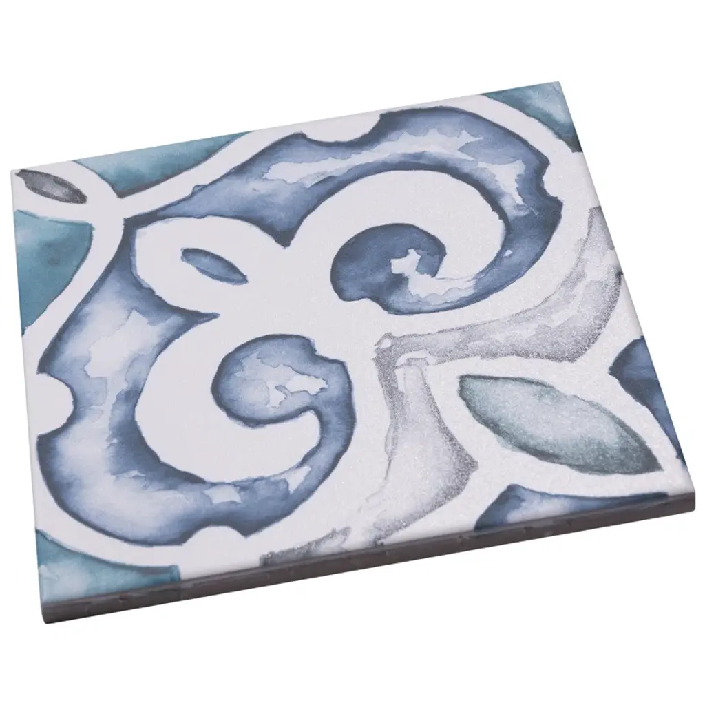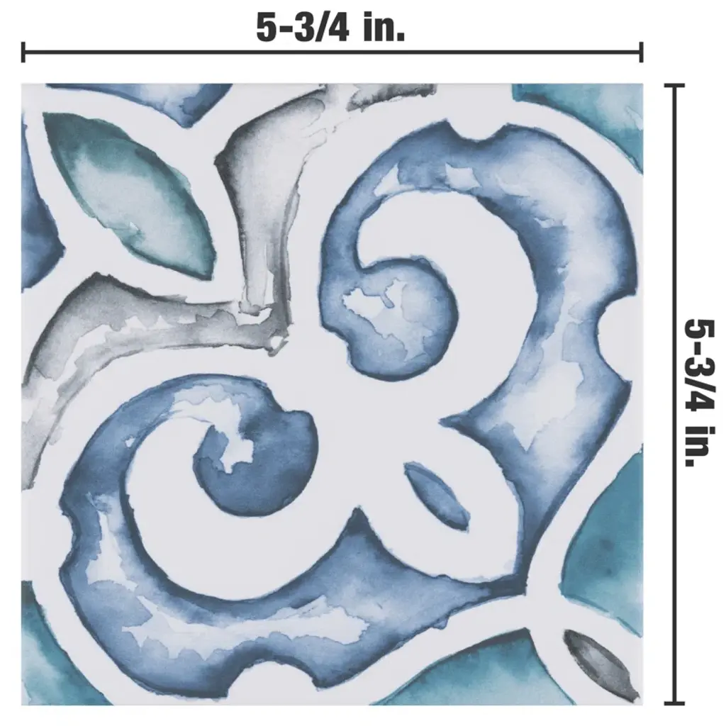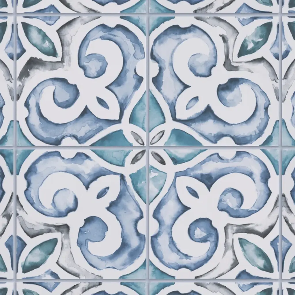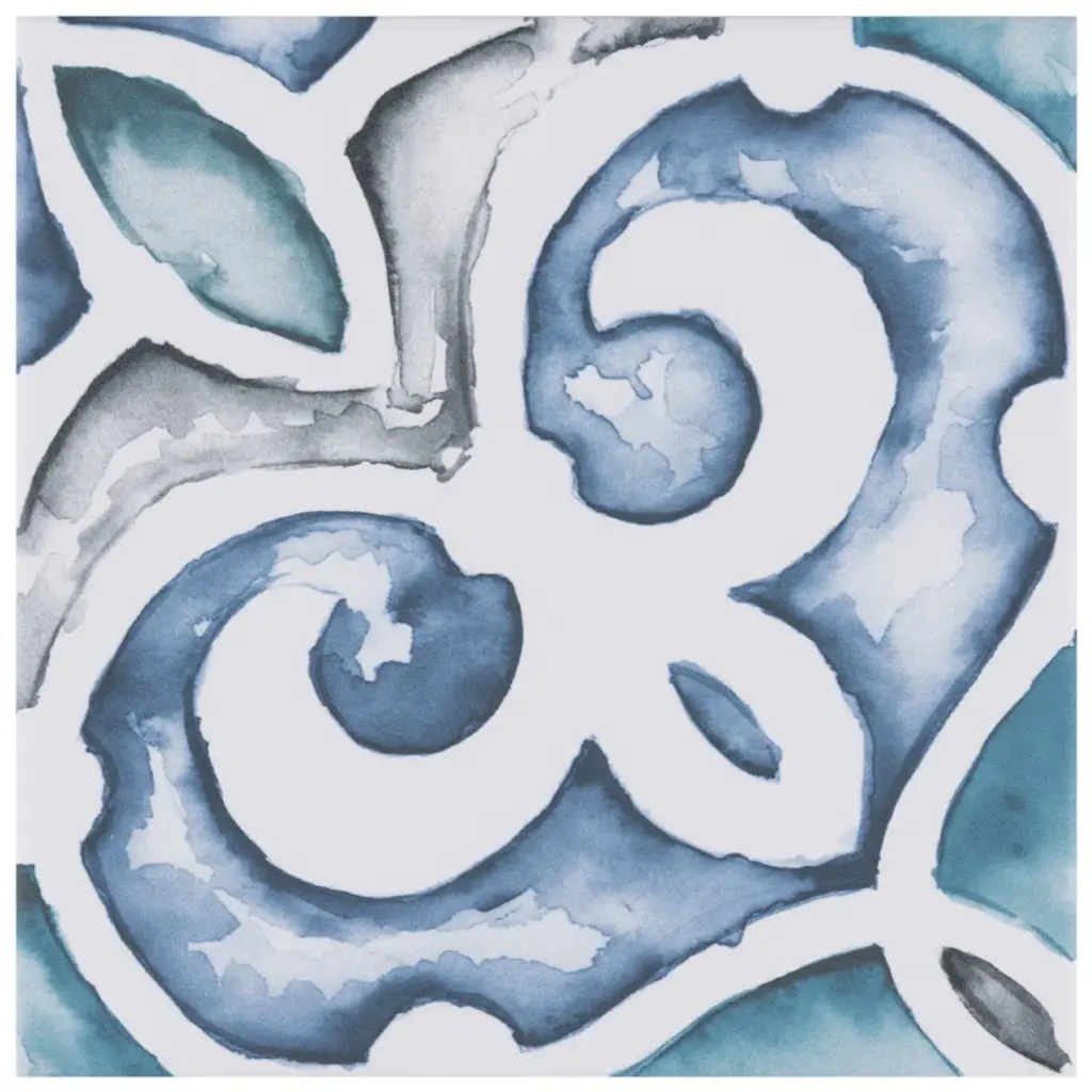 Inspired by traditional hand-painted Mediterranean tiles, our Saint Germain Gele Deco Simone Porcelain Floor and Wall Tile offer vibrant artisanal beauty. This tile features old-world floral patterns in teal, denim blue, and gray watercolor-inspired tones that are set amongst an off-white base glaze. Richly detailed with a smooth, matte finish, this on-trend porcelain tile offers a charming decorative appeal that can blend into virtually any design theme, ranging from contemporary projects to traditional installations. Its impervious, frost-resistant, and durable features make this an ideal choice for both commercial and residential indoor and outdoor installations including kitchens, bathrooms, backsplashes, showers, entryways, and patios. This tile is a perfect choice on its own or coordinated with other products in the Saint Germain series. Tile is the better choice for your space. This tile is made from natural ingredients, making it a healthy choice as it is free from allergens, VOCs, formaldehyde, and PVC.