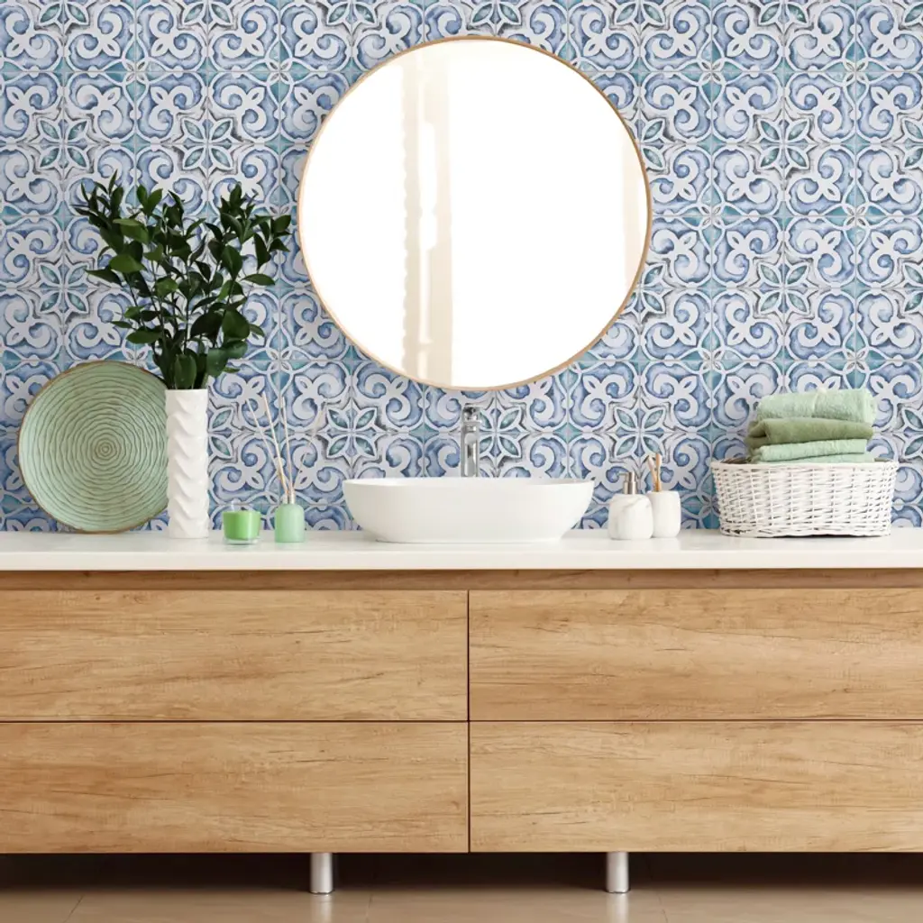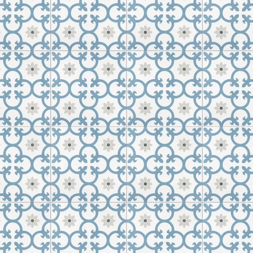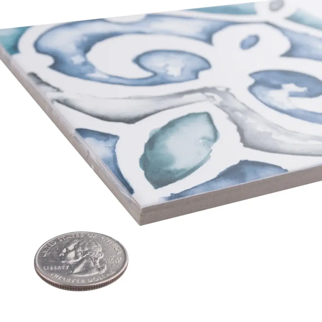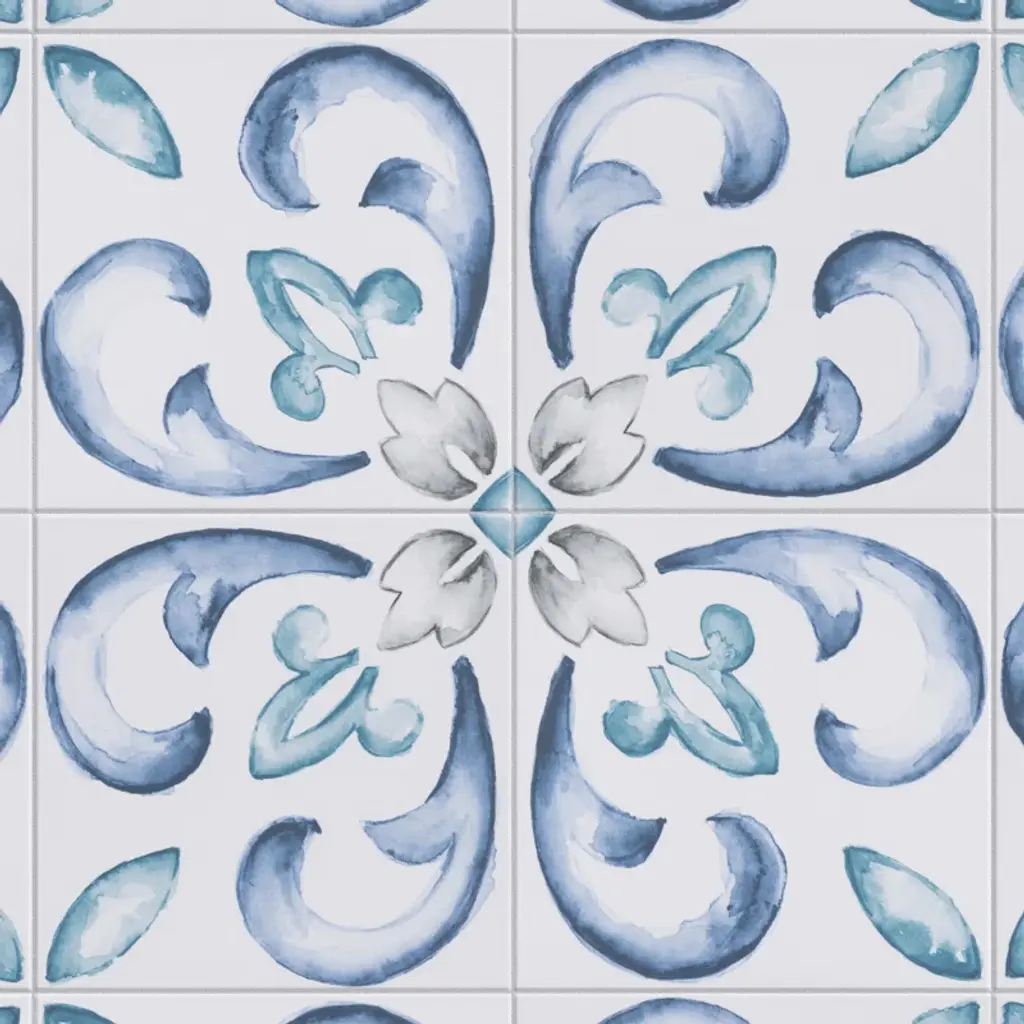 Inspired by traditional hand-painted Mediterranean tiles, our Saint Germain Gele Deco Simone Porcelain Floor and Wall Tile offer vibrant artisanal beauty. This tile features old-world floral patterns in teal, denim blue, and gray watercolor-inspired tones that are set amongst an off-white base glaze. Richly detailed with a smooth, matte finish, this on-trend porcelain tile offers a charming decorative appeal that can blend into virtually any design theme, ranging from contemporary projects to traditional installations. Its impervious, frost-resistant, and durable features make this an ideal choice for both commercial and residential indoor and outdoor installations including kitchens, bathrooms, backsplashes, showers, entryways, and patios. This tile is a perfect choice on its own or coordinated with other products in the Saint Germain series. Tile is the better choice for your space. This tile is made from natural ingredients, making it a healthy choice as it is free from allergens, VOCs, formaldehyde, and PVC.