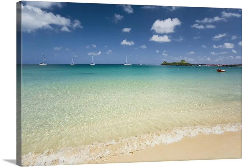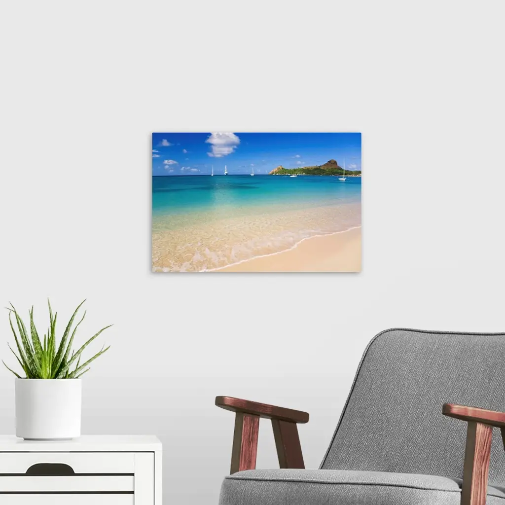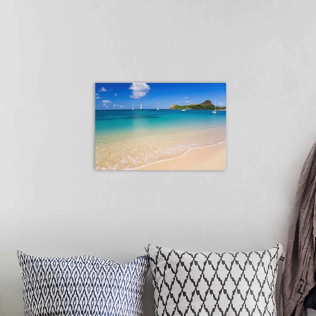 Saint Lucia, Gros Islet, Rodney Bay, Reduit Beach With Pigeon Island In Background