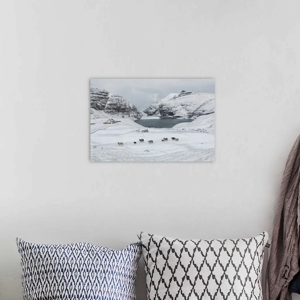 Saksun covered by snow in the mid of May. Streymoy, Faroe Islands