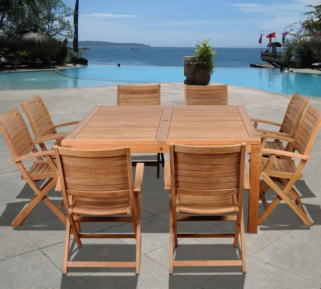 Take your alfresco dinner parties up a notch with the Saldano Square Teak Dining Table. It’s crafted of water-repellant, durable teak – the premier wood for outdoor furniture – and finished in a rich, warm tone that feels like sunshine.