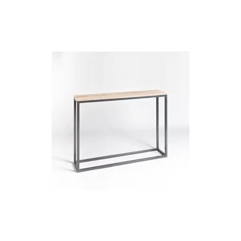 An exquisite example of timeless elegance and contemporary aesthetic, this magnificent console will make a bold and iconic addition in an entryway of a private or contract interior. Handcrafted of iron, the clean base features a gray lacquer adding a remarkable contrast with the delicate pink hue of the travertine marble top. Customizable in metal finish and marble type, please contact the Concierge for details.