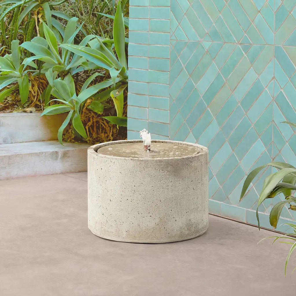 Replicates the look of naturally aged concrete. Handcrafted for a one-of-a-kind piece. No additional plumbing needed. Great for gardens, yards or patios.