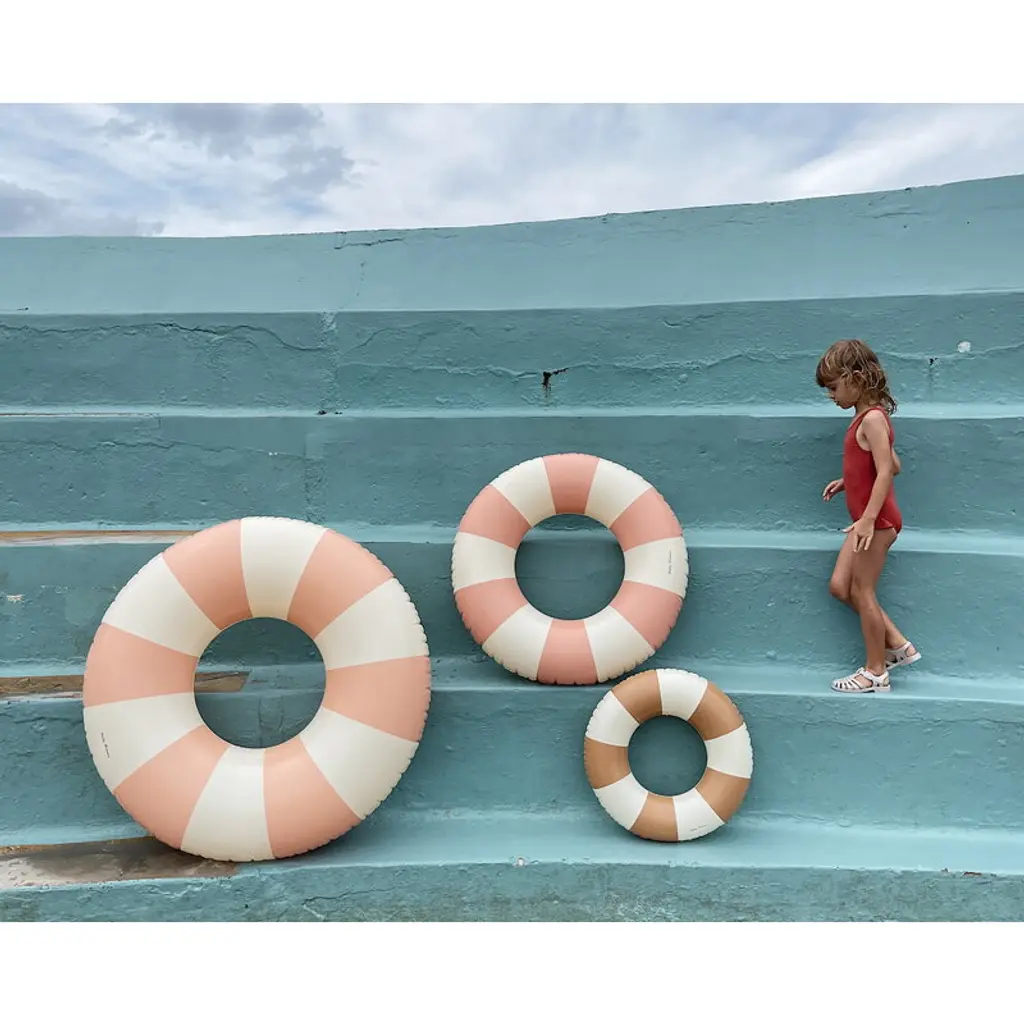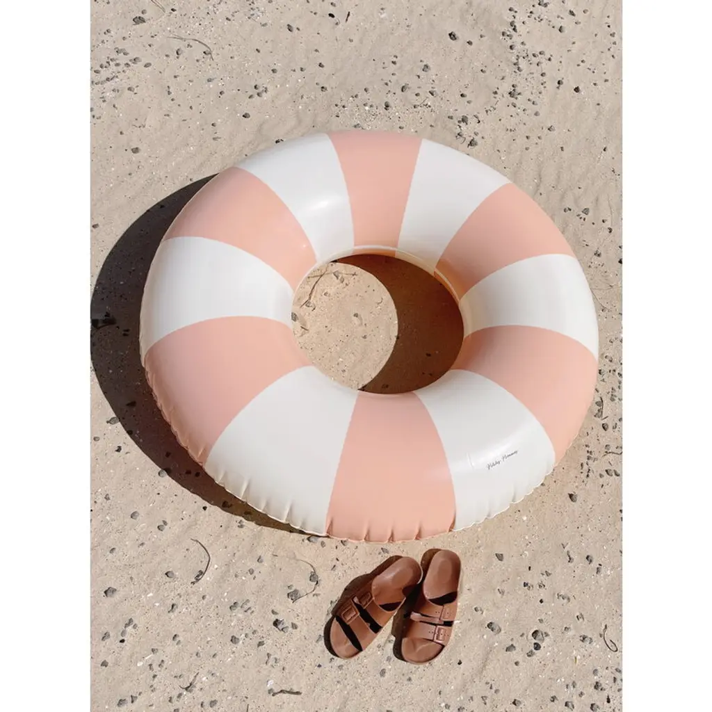 The Sally float by Petites Pommes is a must-have for summer days filled with water play and sunshine. With its elegant look and classic striped design, the stylish swim ring recalls warm Mediterranean breezes and carefree holiday moments. The playful yet timeless float will surely turn heads at the beach or by the pool! The Sally float is hand-printed from durable PVC. The 35.43 in (90 cm) swim ring is designed for water lovers over 6 years of age and up to 165.35 x 0 lbs (75 x kg. kg). Choose your favorite color and let your summer float by in effortless style!
