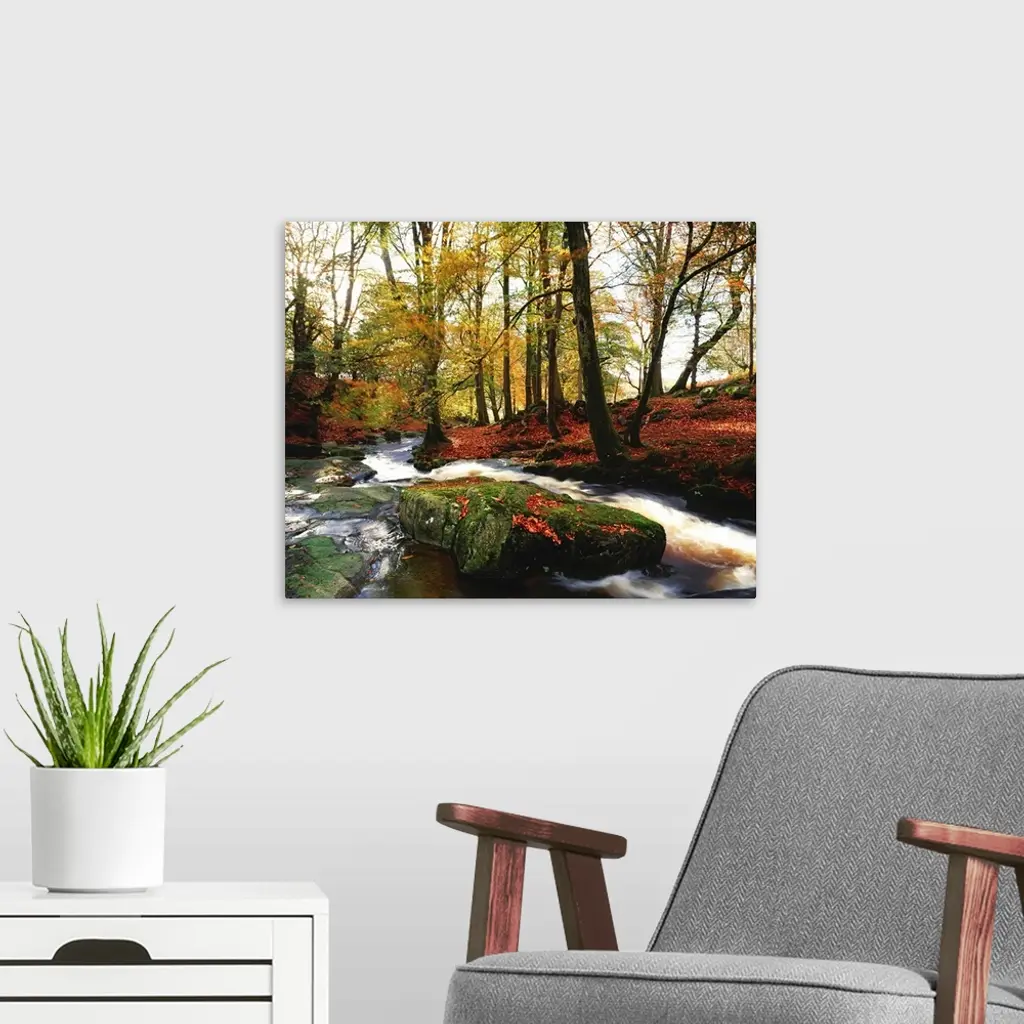 Sally Gap, County Wicklow, Ireland, Creek In Woods In Autumn wall art for home and office decor. Discover canvas art prints, photos, mural, big canvas art and framed wall art in GreatBigCanvas.com's varied collections.