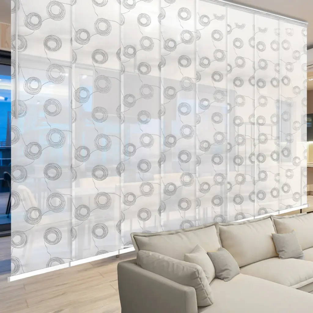 Central Design Products is pleased to introduce a new innovative panel track that offers easy 2-way installation, adding an alluring style and refined touch to your home decor. The double rail design of the track is sleek, compact, and reduces the overall footprint and weight of the installation, eliminating bulky, intrusive window treatments. Adjusting the panel height is a breeze � simply trim the panel, re-attach the liner, and install the panel weight. Detailed instructions are included.The panel track also features a patented slider design, made with aluminum and fitted with bearings that allow for durable and smooth operation. The sliders are stacked closer together than conventional panel tracks, reducing light bleed coming from the gaps between panels. This track has endless uses from dividing rooms, garages, offices, and closets to decorating windows and patios. Available in smaller sizes including 3, 4, 5, 6, and 7 panels. Extends from 130-175� wide. Each panel measures 23.5" wide and 116" tall, with a total installation height of 118.5" (includes the 2.5" rail track). The track can be wall or ceiling mounted. The panels can stack on the left or the right. The clearance from the wall is extendable from 1.25� to 3.25� and projection from the wall is extendable from 3� to 4.25�. Salma panel is made from 100% Polyester, with a light filtering shade that blocks 50% of the light.