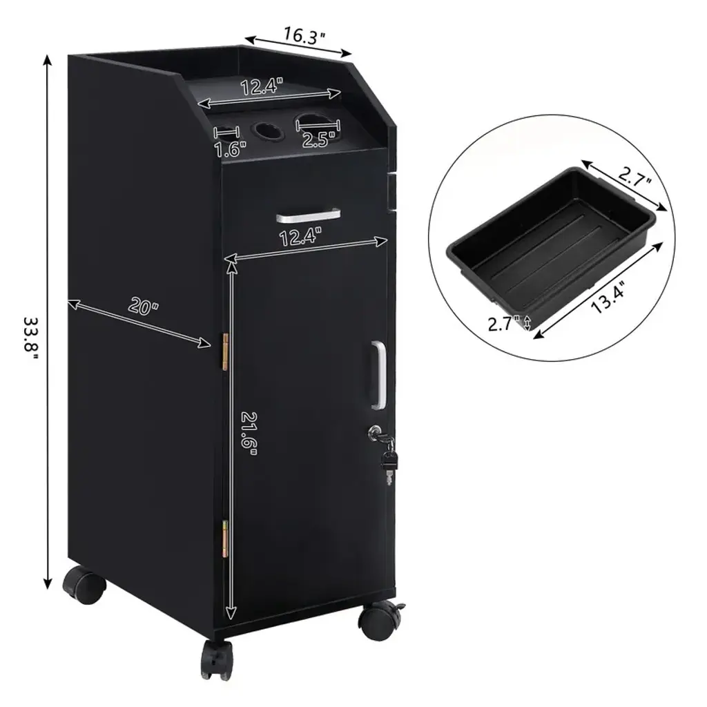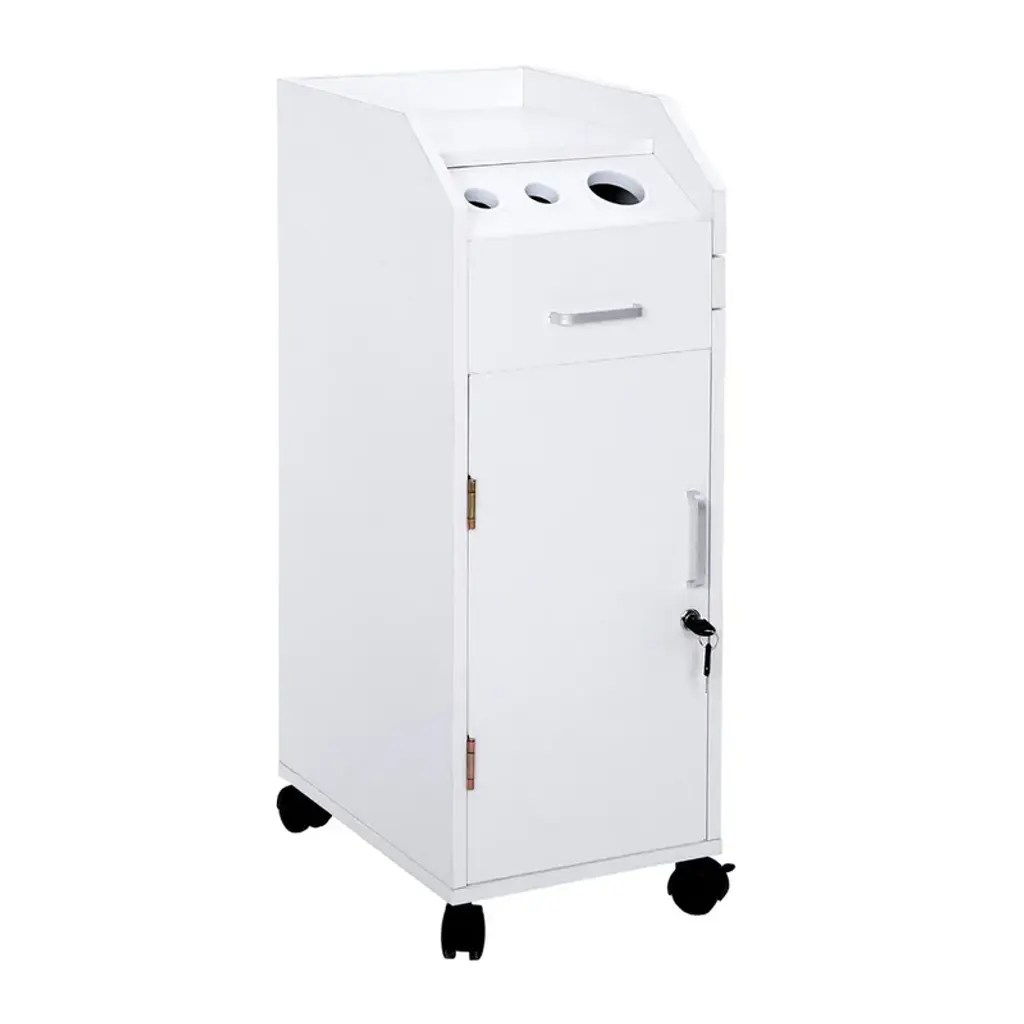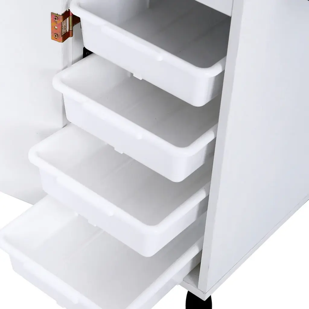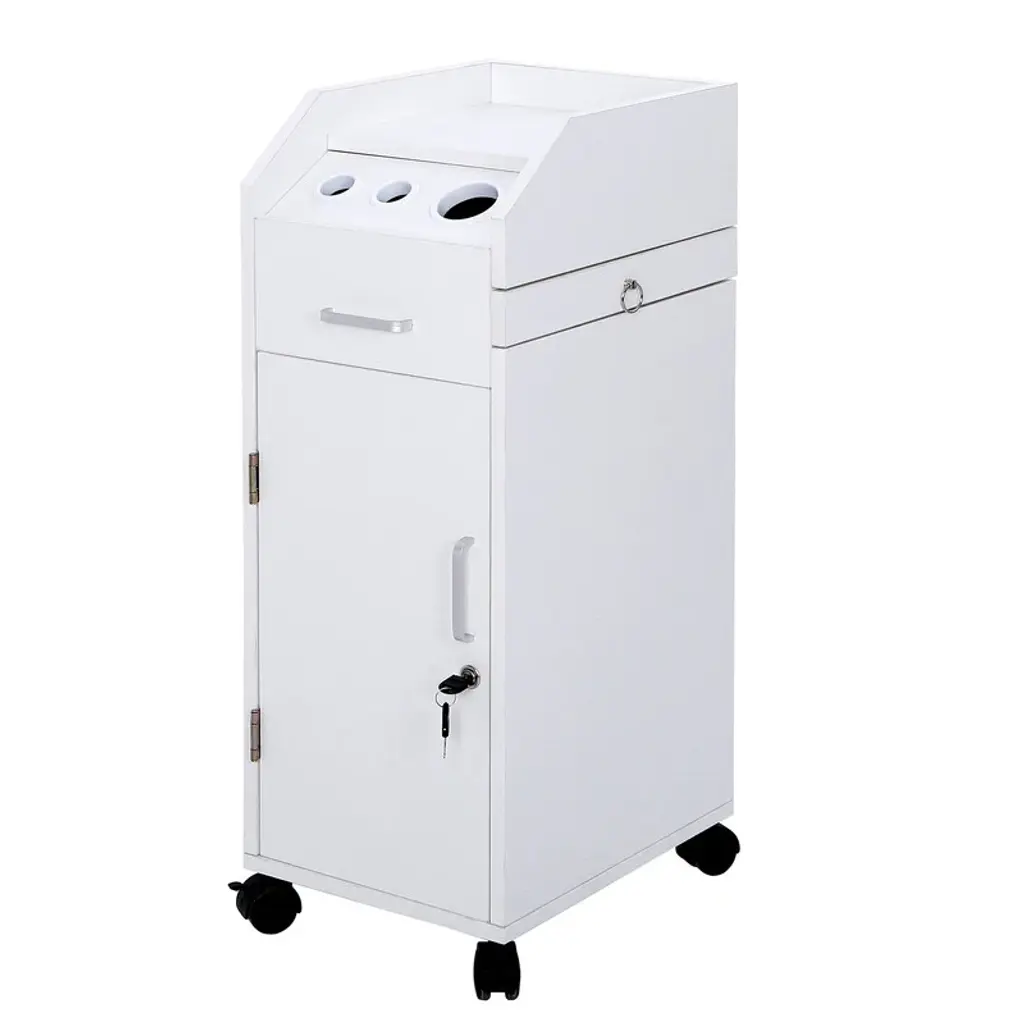 This rolling accessory trolley cart is an ideal solution for beauty salons, tattoo shops, nail technicians, pet groomers, and others who require a cart that provides plenty of compartments for storage of tools and equipment.Features1. 3 rings with different diameters are included2. Trolley rest on four, smooth-rolling swivel casters for easy mobility around the work area.3. Flat top of the trolley with protective walls are designed to receive or hold the included drawers, allowing the user to expand the work surface.4. Addition to 4 drawers and 3 holes, it has a very space-saving and compact storage design, that is, the side tray in the cart that can slide in and out. It does not take up space when not in use and provides an extensive storage space when needed, which is convenient for your work.