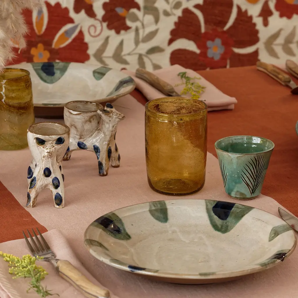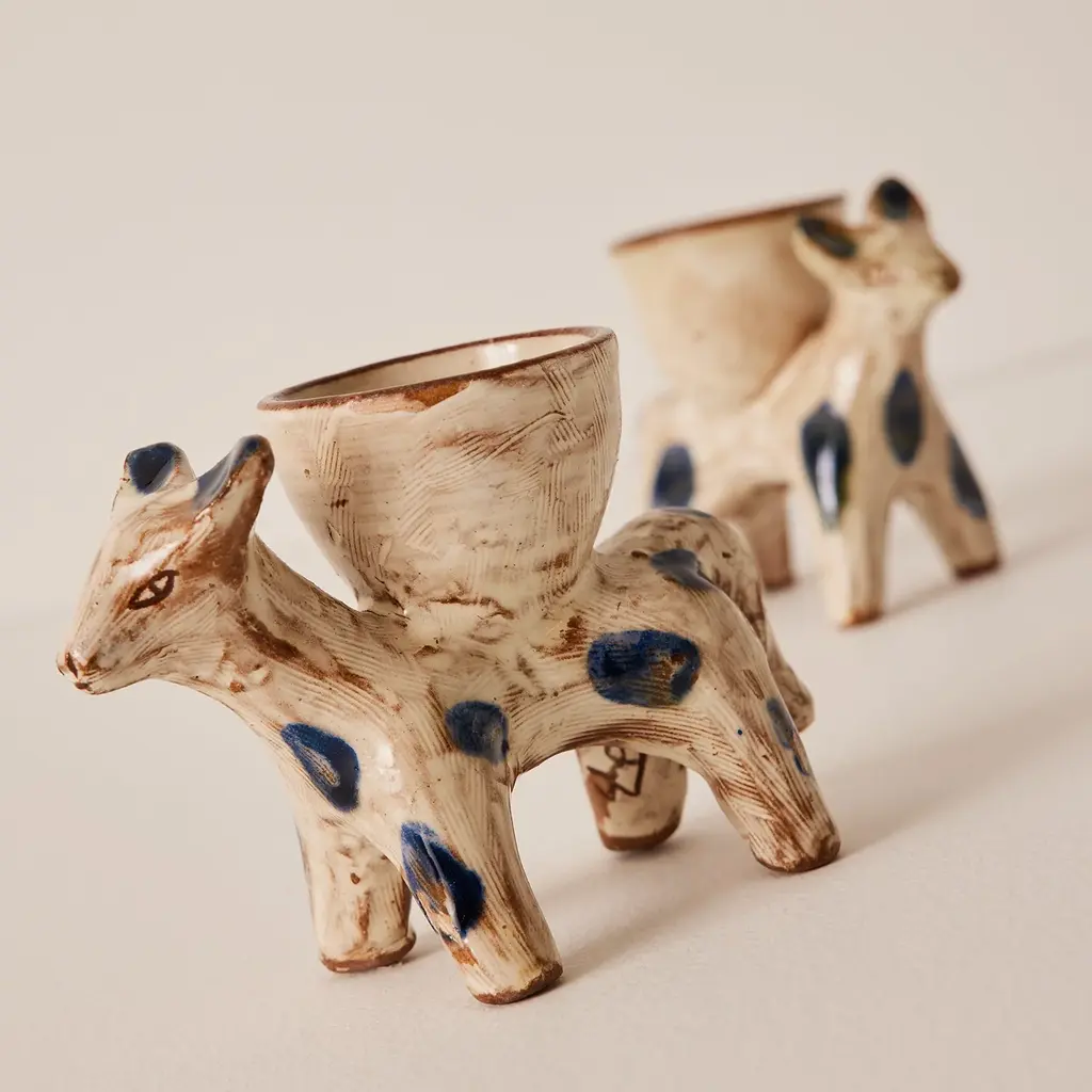 Add a dash of playfulness and a pinch of heritage to your table with this goat-shaped salt and pepper set by ANŪT. Paying homage to one of Egypt’s most ubiquitous animals, the handy duo is crafted by hand in the luxuriant Egyptian oasis of Fayoum, a mythical place known for its long tradition of creating pottery. A small yet unmissable statement piece that is sure to invite conversation.* ANŪT Cairo products are entirely handcrafted, so slight imperfections, color variations, and minor size differences may occur.