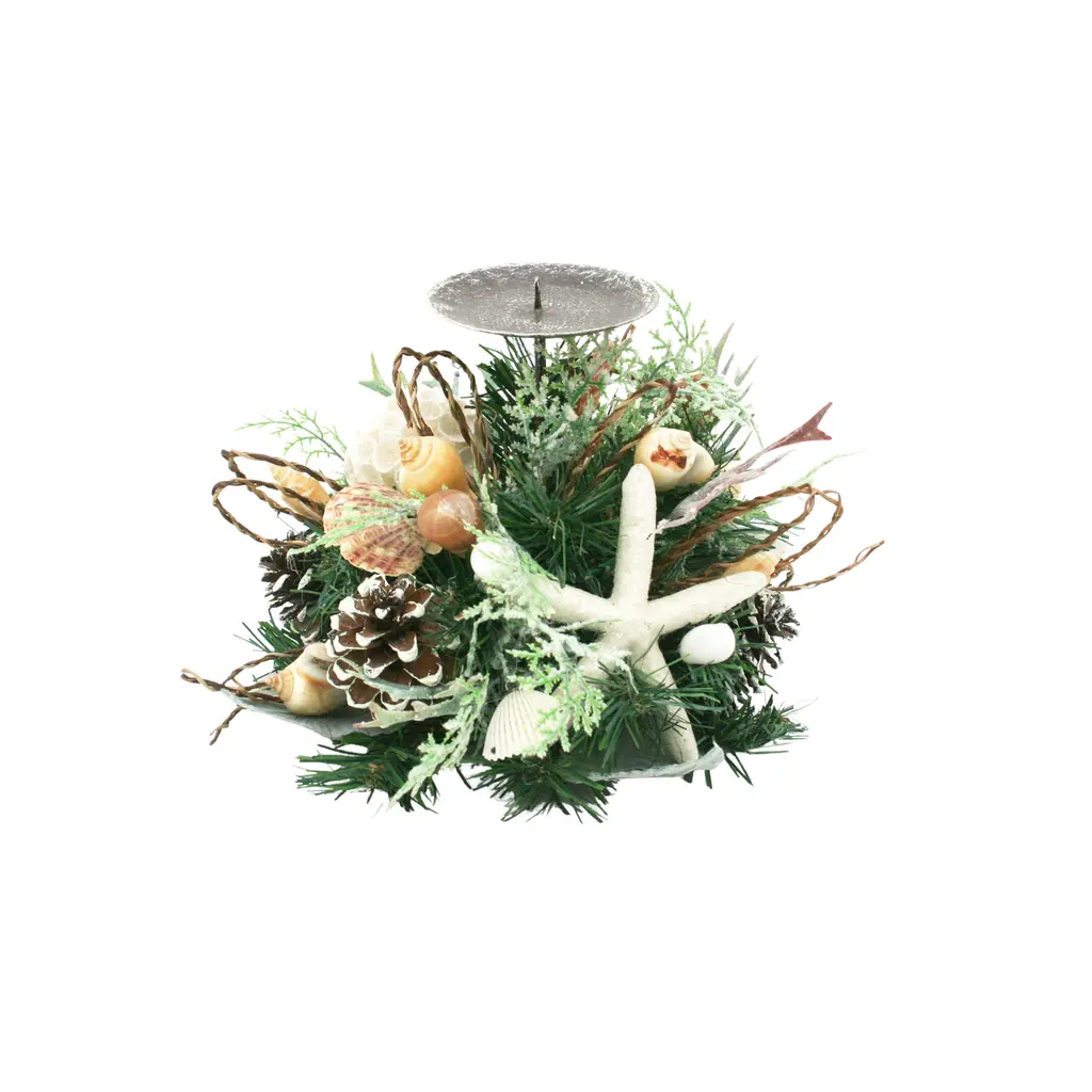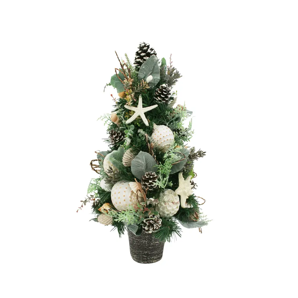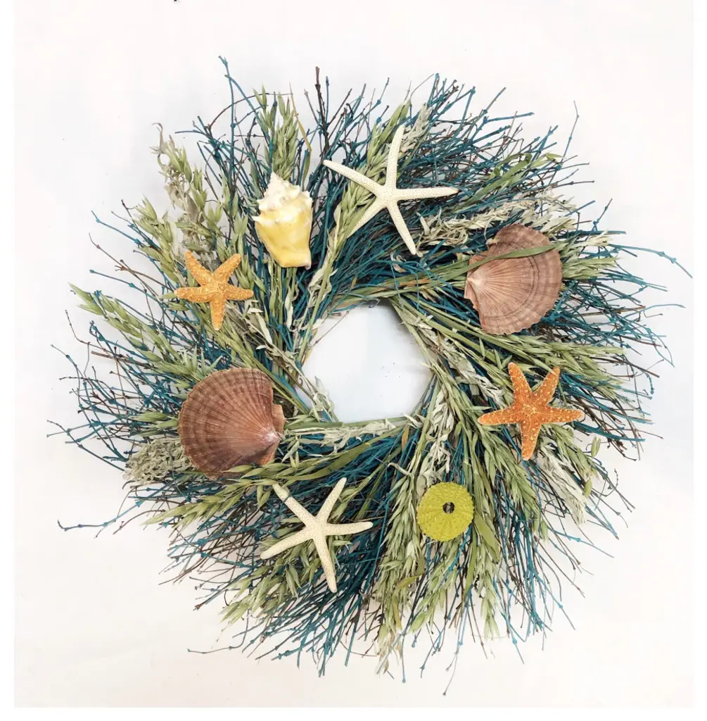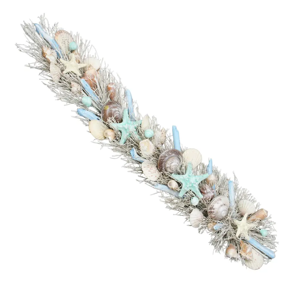 Bring the calm of the coast into your home with this handcrafted topiary, a sculptural blend of ocean elements and organic texture. Real shells - each selected for their soft ivory and natural beauty - are nestled among shades of blue, from misty aqua to coastal sky, evoking the layered hues of sea and air. Coco twigs provide earthy contrast, enhancing the natural depth and texture of the piece.