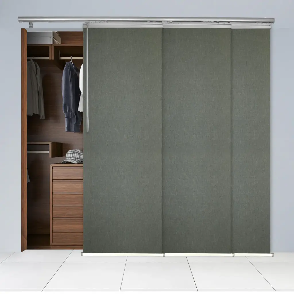 Central Design Products is pleased to introduce a new innovative panel track that offers easy 2-way installation, adding an alluring style and refined touch to your home decor. The single rail design of the track is sleek, compact, and reduces the overall footprint and weight of the installation, eliminating bulky, intrusive window treatments. Adjusting the panel height is a breeze � simply trim the panel, re-attach the liner, and install the panel weight. Detailed instructions are included.The panel track also features a patented slider design, made with aluminum and fitted with bearings that allow for durable and smooth operation. The sliders are stacked closer together than conventional panel tracks, reducing light bleed coming from the gaps between panels. This track has endless uses from dividing rooms, garages, offices, and closets to decorating windows and patios. Available in larger sizes including 8, 10, and 12 panels. Extends from 36-66� wide. Each panel measures 23.5" wide and 91.5" tall, with a total installation height of 94" (includes the 2.5" rail track). The track can be wall or ceiling mounted. The panels can stack on the left or the right. The clearance from the wall is extendable from 1.25� to 3.25� and projection from the wall is extendable from 3� to 4.25�. Salvatore panel is made from 100% Polyester, with a light filtering shade that blocks 70% of the light.