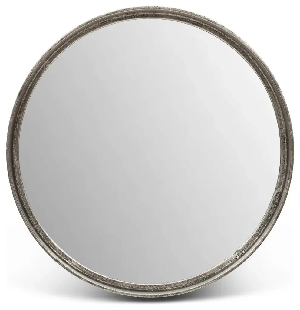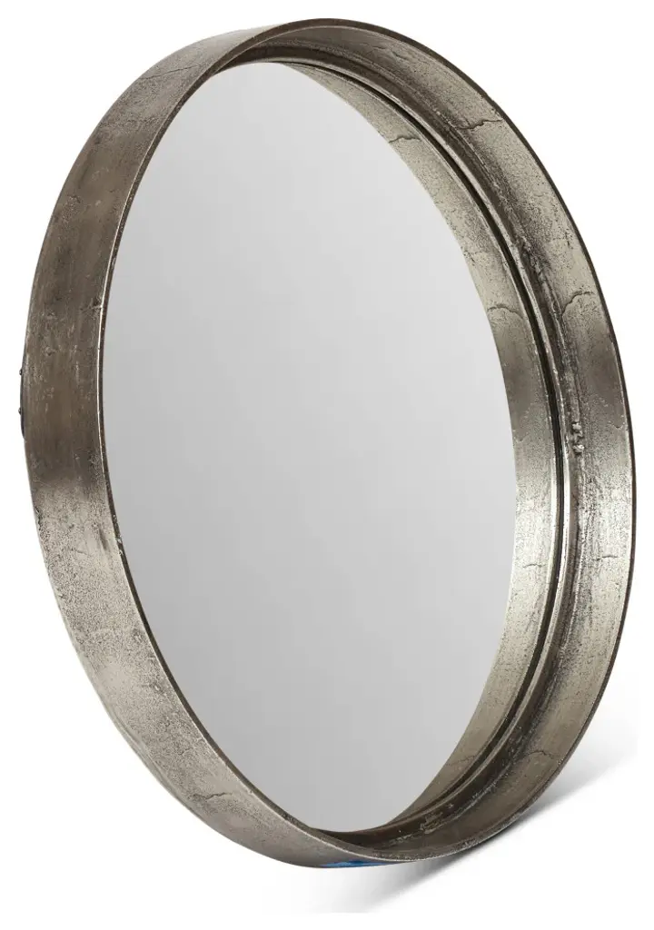 Samar 23" Round Mirror, Vintage Silver