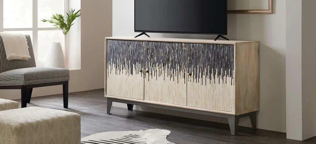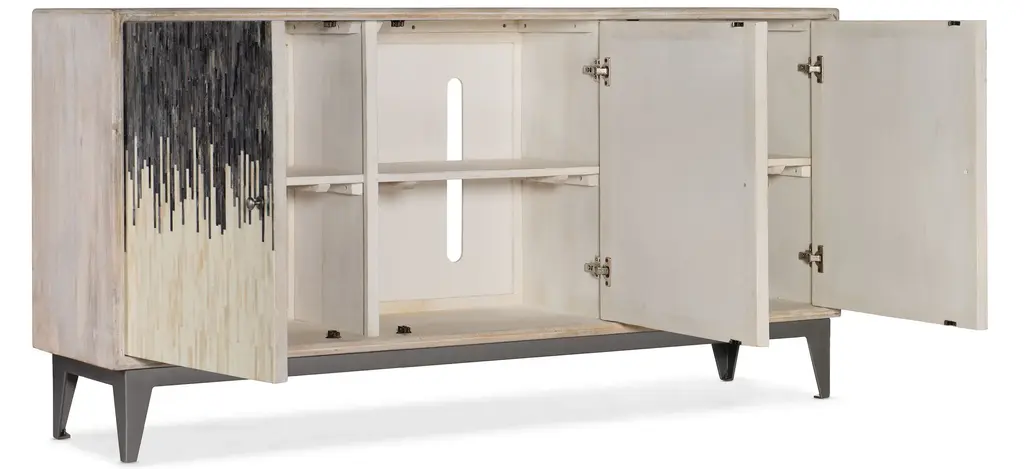 Gracefully disguise modern technology with the Swirl three door entertainment console.