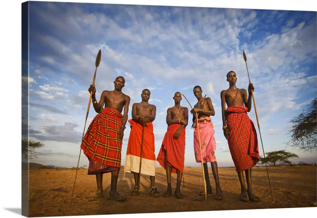 Samburu tribe at sunset, Kenya, Africa wall art for home and office decor. Discover canvas art prints, photos, mural, big canvas art and framed wall art in GreatBigCanvas.com's varied collections.