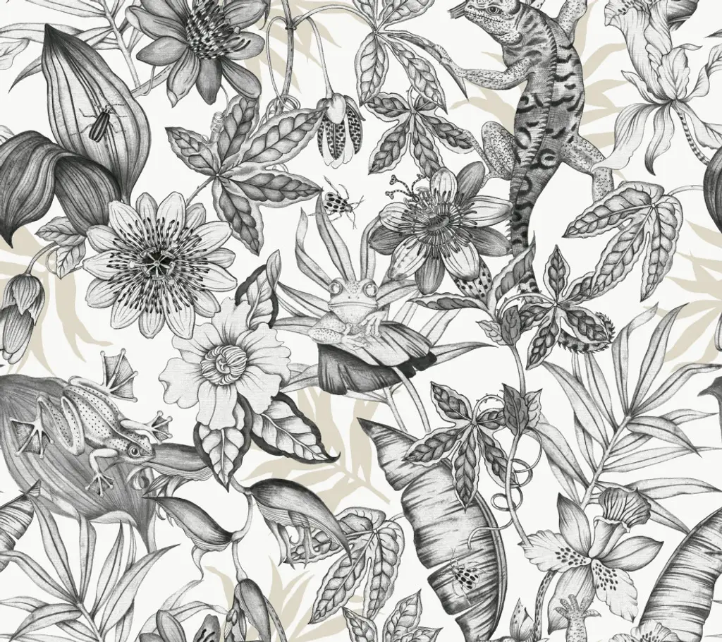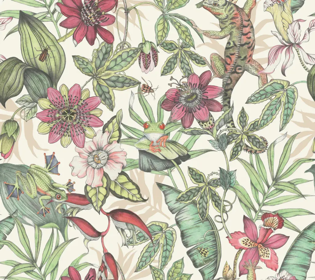 Sample Rainforest Wallpaper In Cream/green Multi From The Blooms Second Edition