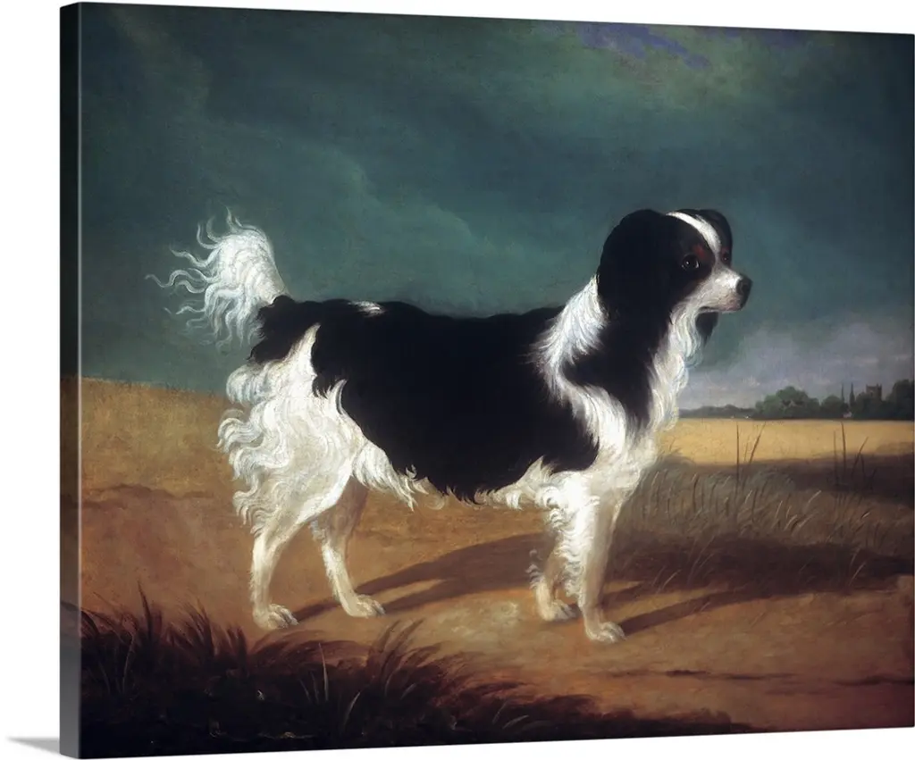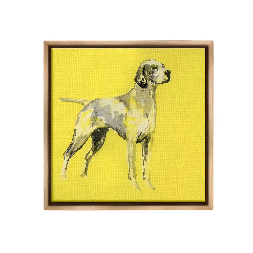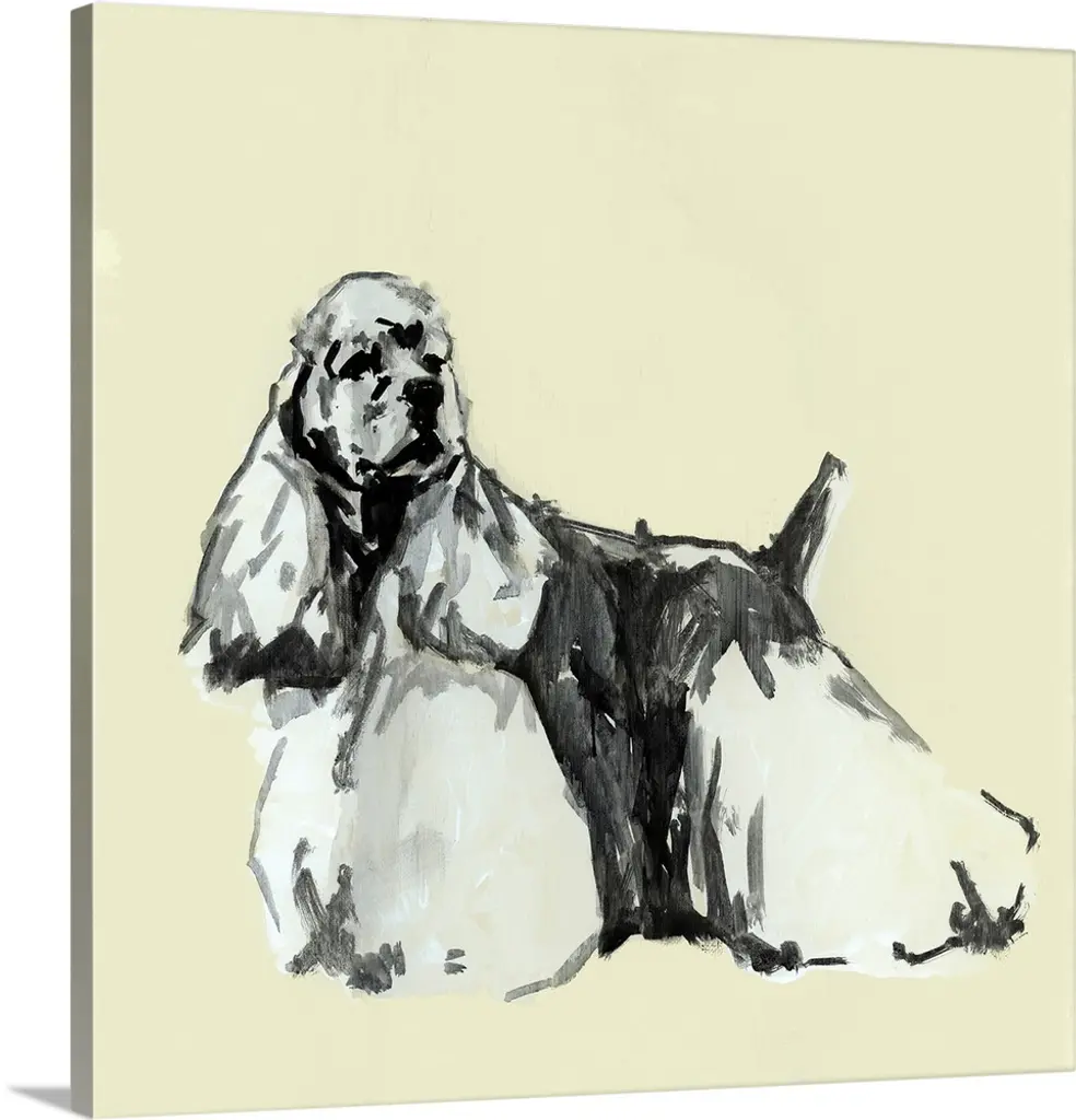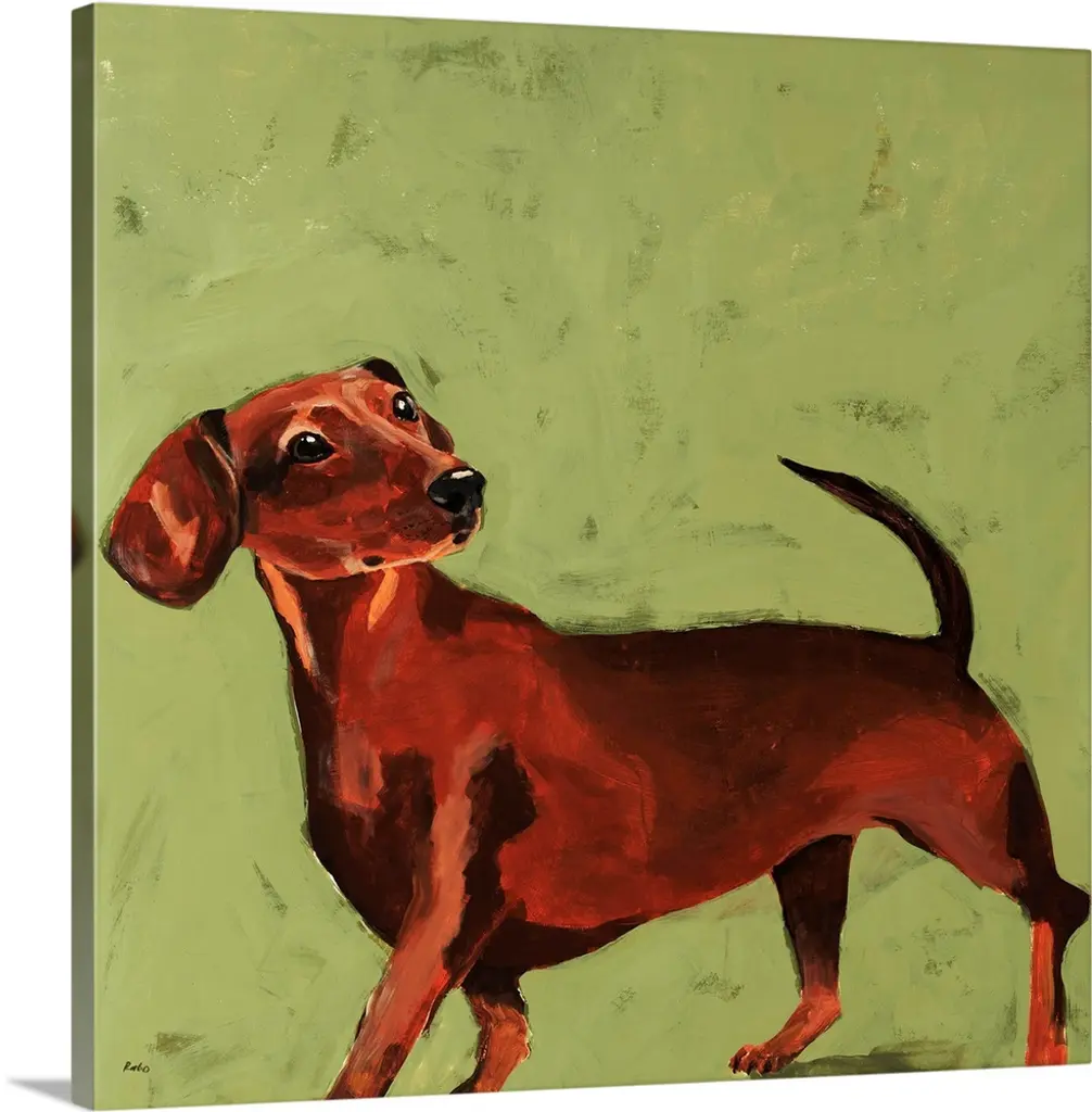 This whimsical drawing is of a beagle dog standing on a patch of grass with the sky behind it that appears to be scratched.