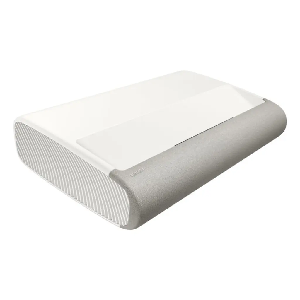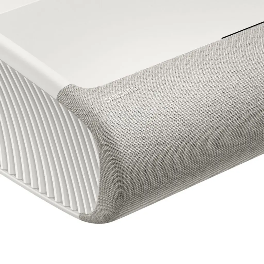 Enjoy a luxuriously large presentation of movies, shows and video gameswithout installing a massive television. Fitted with a stand that rotates to suit your space, The Premiere 7 from Samsung offers point-and-play ease: just pick a spot, tilt if needed and enjoy your new home theater. The laser projector creates a sharp, richly hued image up to 120", and its ultra short throw capability means that the projector can be placed right next to the wall. The ultra-bright laser creates precisely illuminated imageseven in daylightwhile the Vision Booster automatically adjusts the brightness, contrast and color saturation to suit the room. Incorporating powerful speakers and Dolby atmos, the sound system fills the room for an immersive viewing experience and crisp AI-enhanced dialogue. When not in use, the understated and unobtrusive projector can be used to create ambience by projecting personal photos, background scenes and more on your wall.