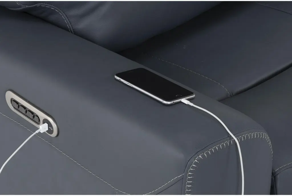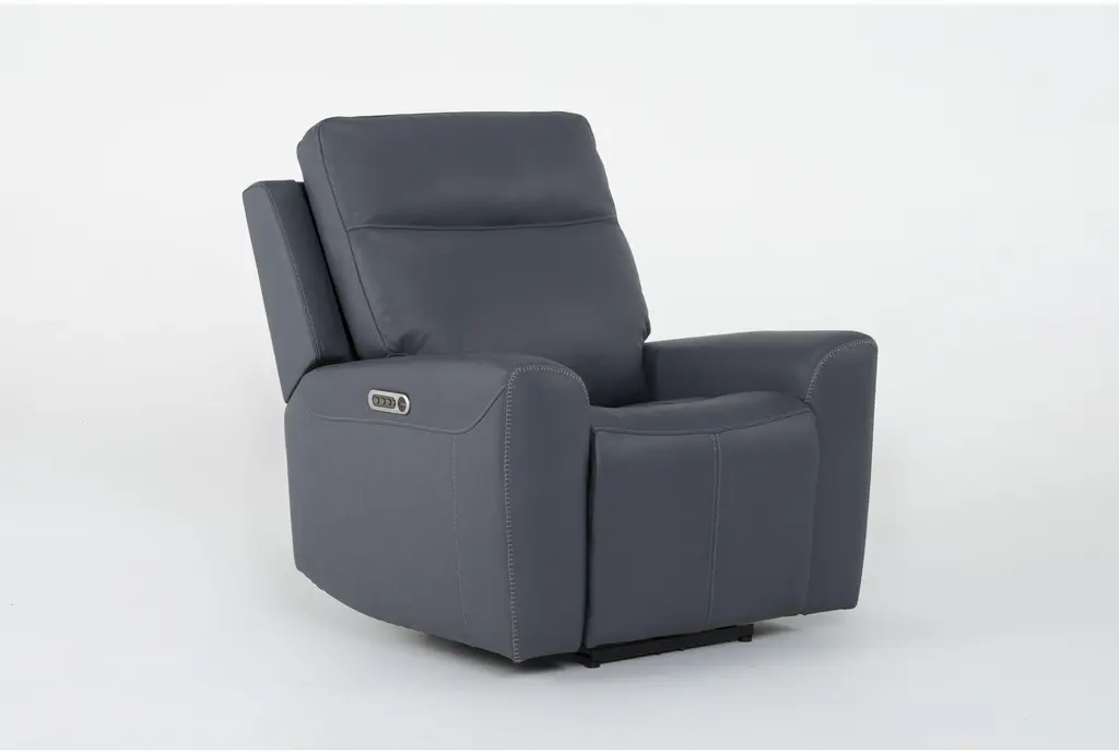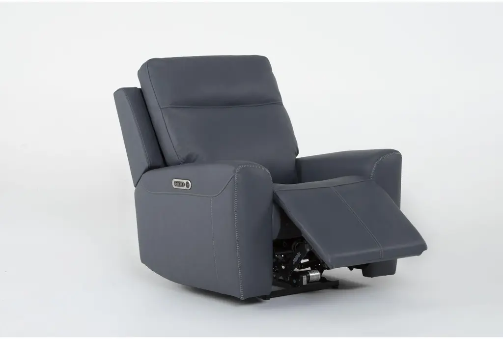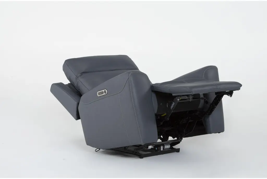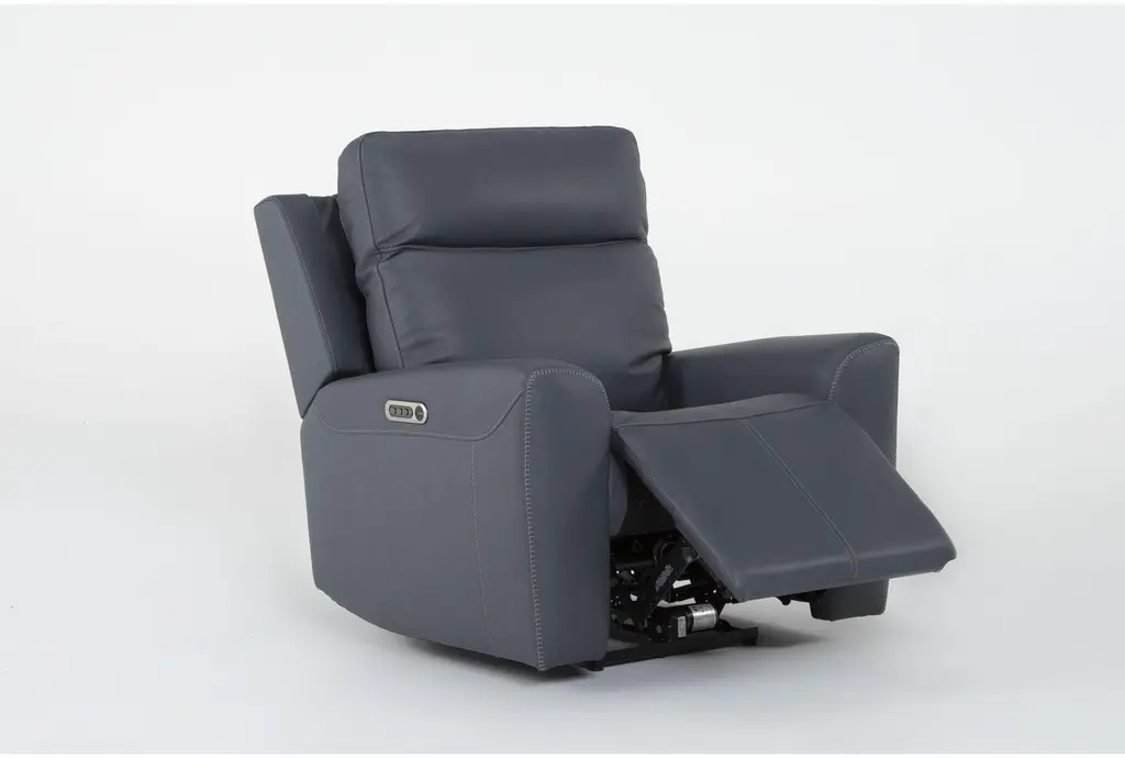 Samuel Blue Leather Flexsteel Power Zero Gravity Recliner With Power Headrest Power Lumbar & Usb | Lay-Flat Reclining | Smart | Flat